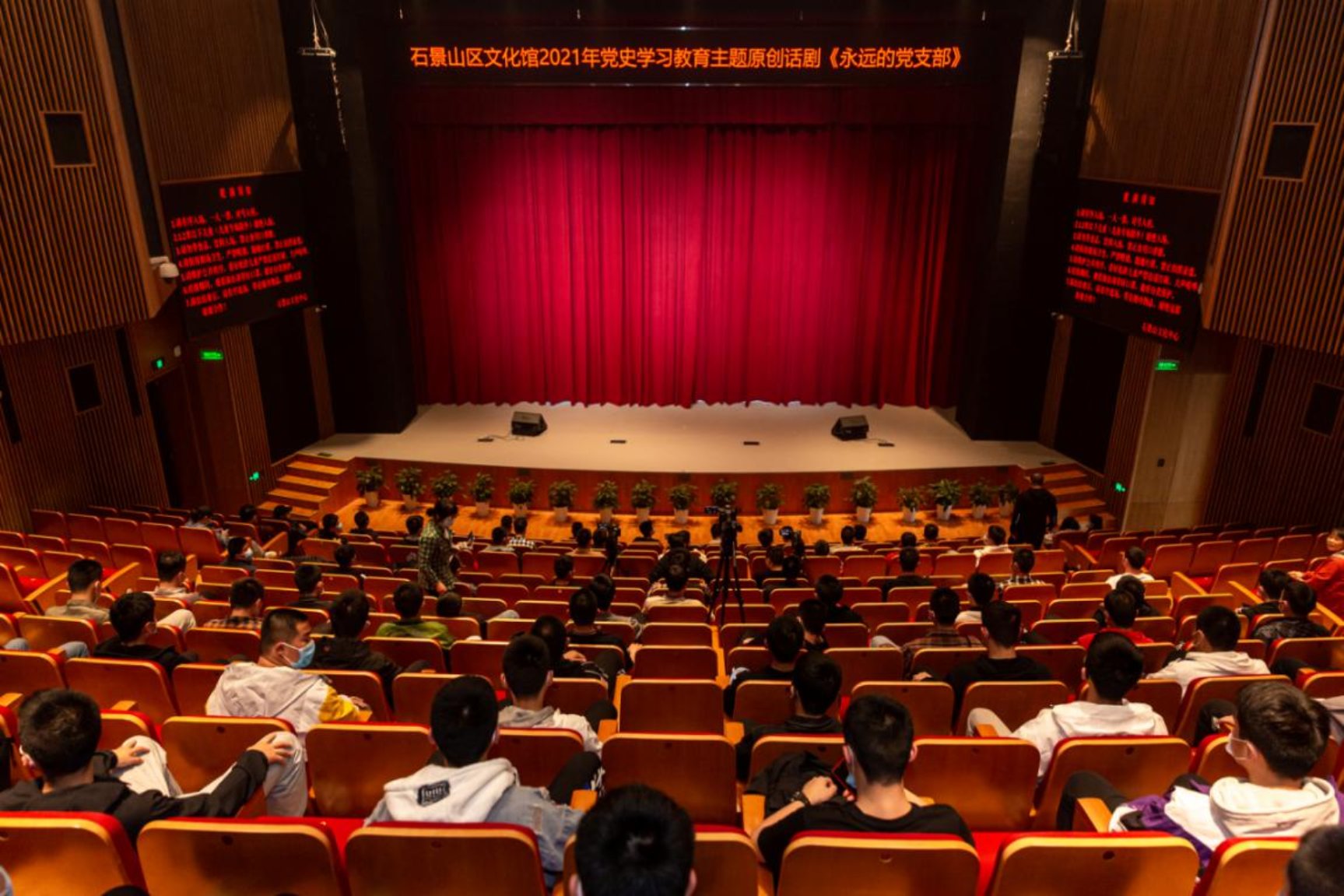 为深化党史学习教育,3月30日晚,应石景山区文化旅游局邀请,我校团委书记郑兴、团委副书记赵萌组织师生代表80人赴石景山区文化中心观看原创话剧《永远的党支部》。