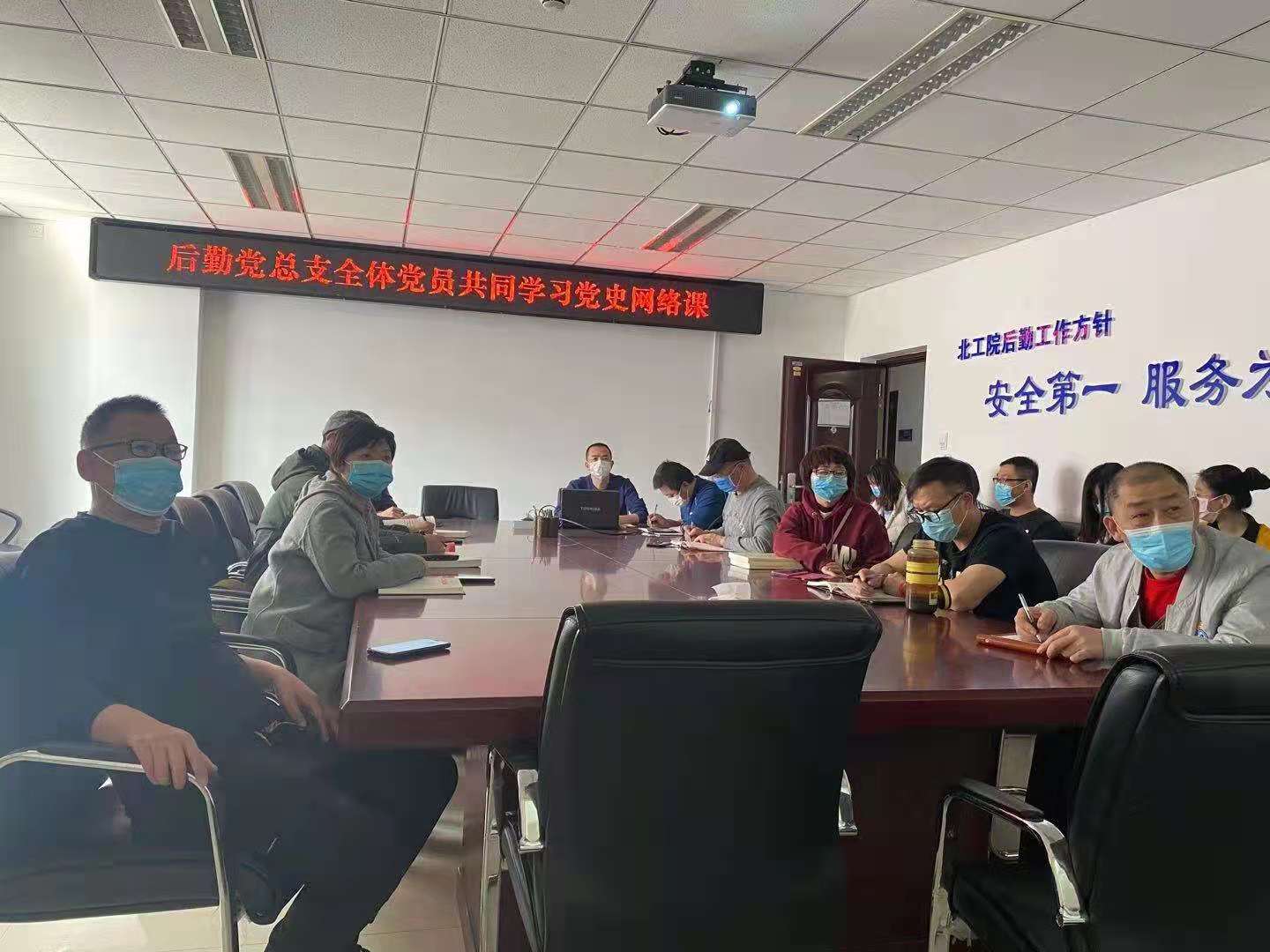 为深入学习贯彻习近平总书记关于党的历史的重要论述,围绕学党史、悟思想、办实事、开新局,高标准高质量抓好党史学习教育各项工作,后勤集团党总支召开全体后勤党员学习党史动员大会,号召全体党员增强党员的理想信念,了解中国共产党的发展历程和取得的辉煌成就。组织全体党员集中学习了谢春涛教授主讲的“首都百万师生同上一堂党史课”第一讲《中国共产党为什么能?》专题讲座,并通过电子屏滚动播放、展板张贴宣传海报等方式展开党史学习宣传,引导全体党员传承红色基因,坚定理想信念,牢记党的初心和使命。