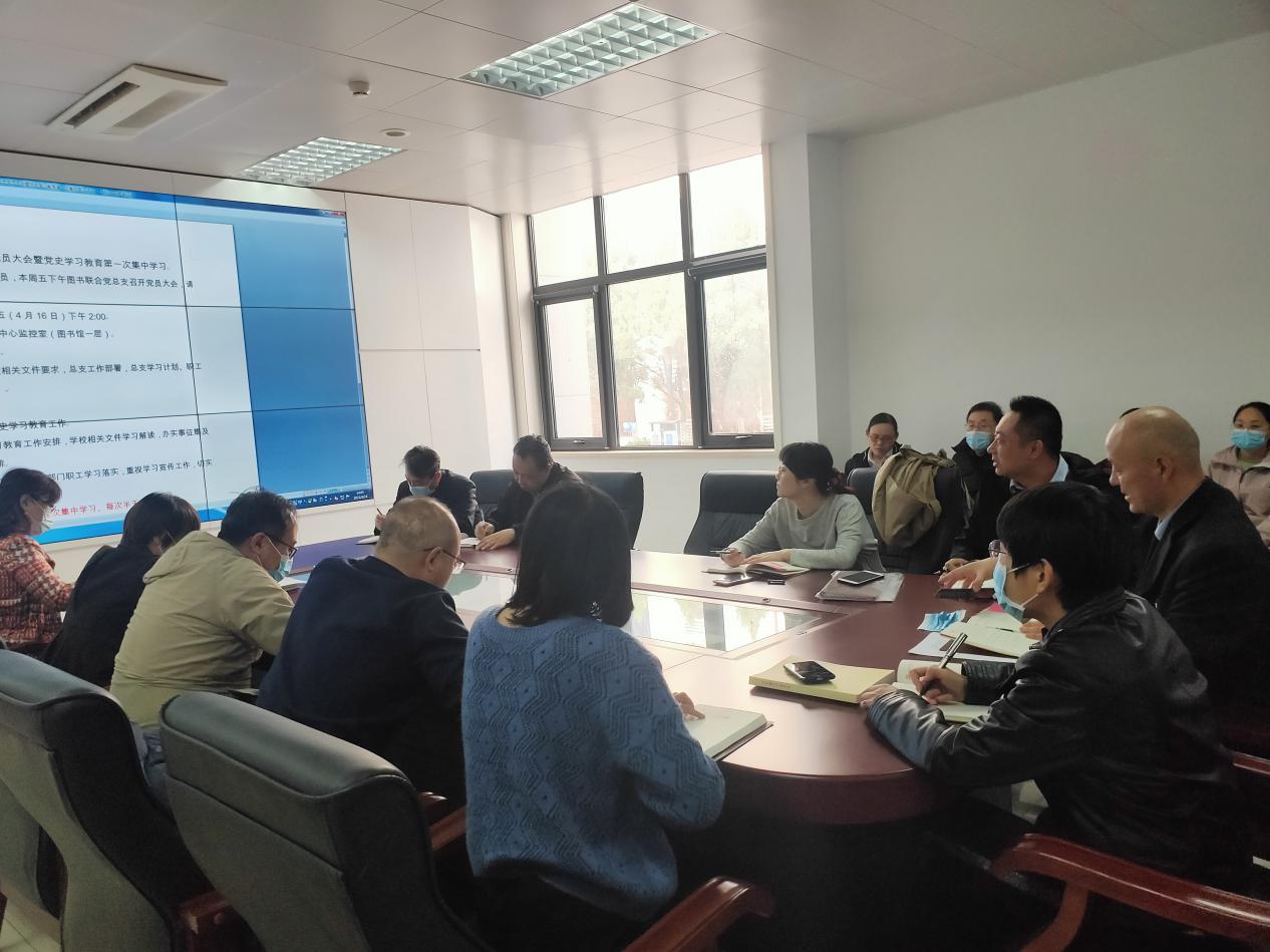 2021年4月16日下午,图书联合党总支在信息中心监控室召开党史学习教育推进部署暨第一次集中学习大会,主管领导周燕副校长参加了会议,会议由党总支书记朱元忠主持。