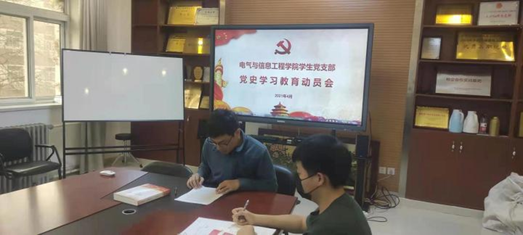 为了让广大学生党员深入贯彻习近平总书记在党史学习教育动员大会上的讲话精神,4月15日下午,电气与信息工程学院学生党支部在创新楼三层会议室召开党史学习主题教育动员大会。会议由电信学院学生党支部书记郎博主持,支部全体党员参加会议。