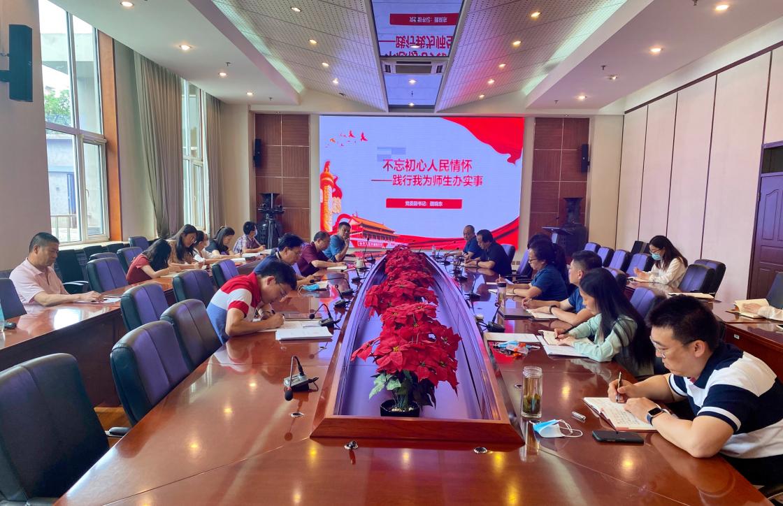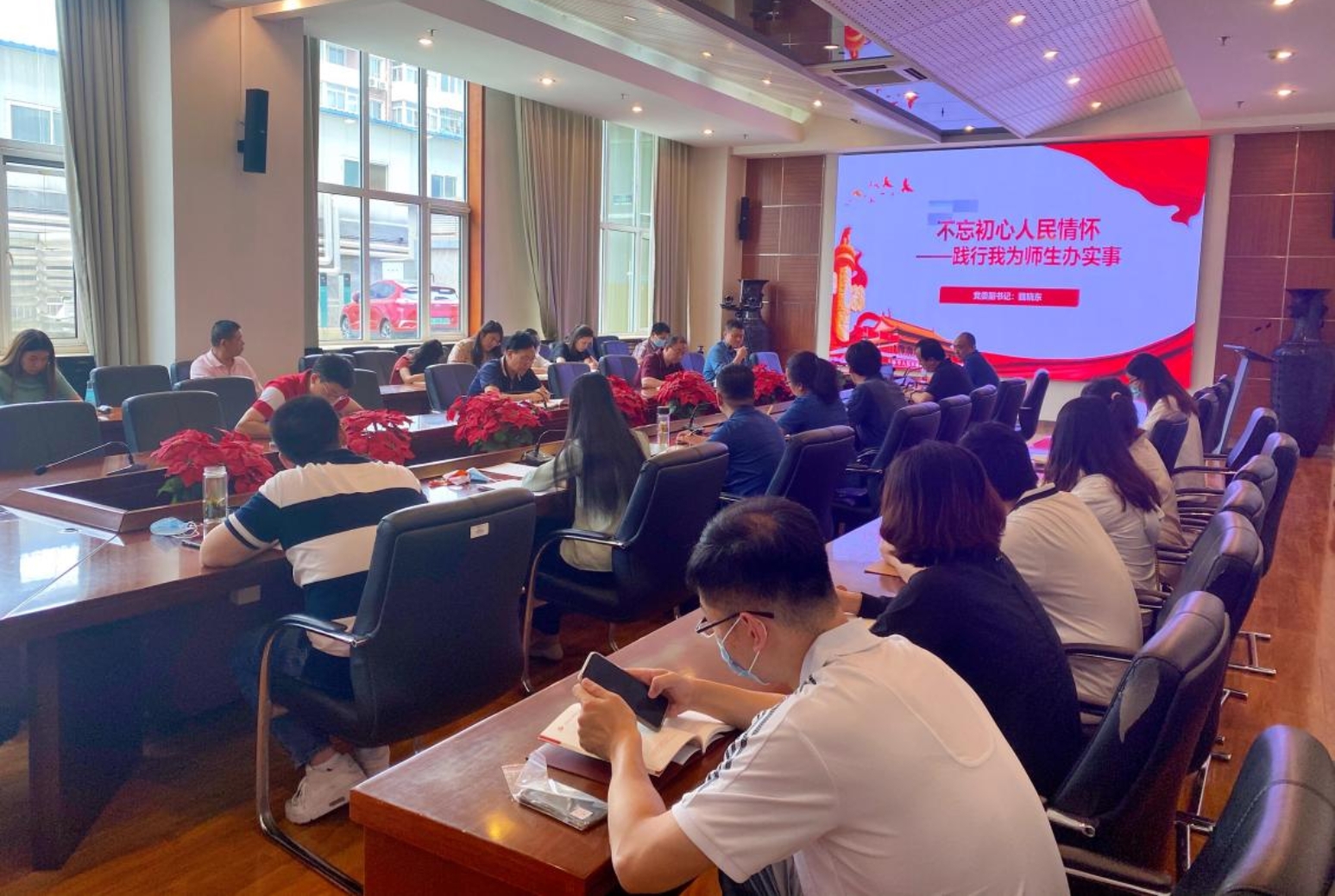 魏书记的党课题目为《不忘初心人民情怀——践行我为师生办实事》,他从两个方面来分享什么是不忘初心和人民情怀,要在深刻领会“什么是初心”的基础上,把握“学什么”这个关键,还要在“怎样做”上充分结合本职工作,准确把握学习教育的目标要求、聚焦重点学习内容、落实重点任务,在目标要求上,遵守党的纲领,学史明理、学史崇德、向外利他,守立德树人之初心。