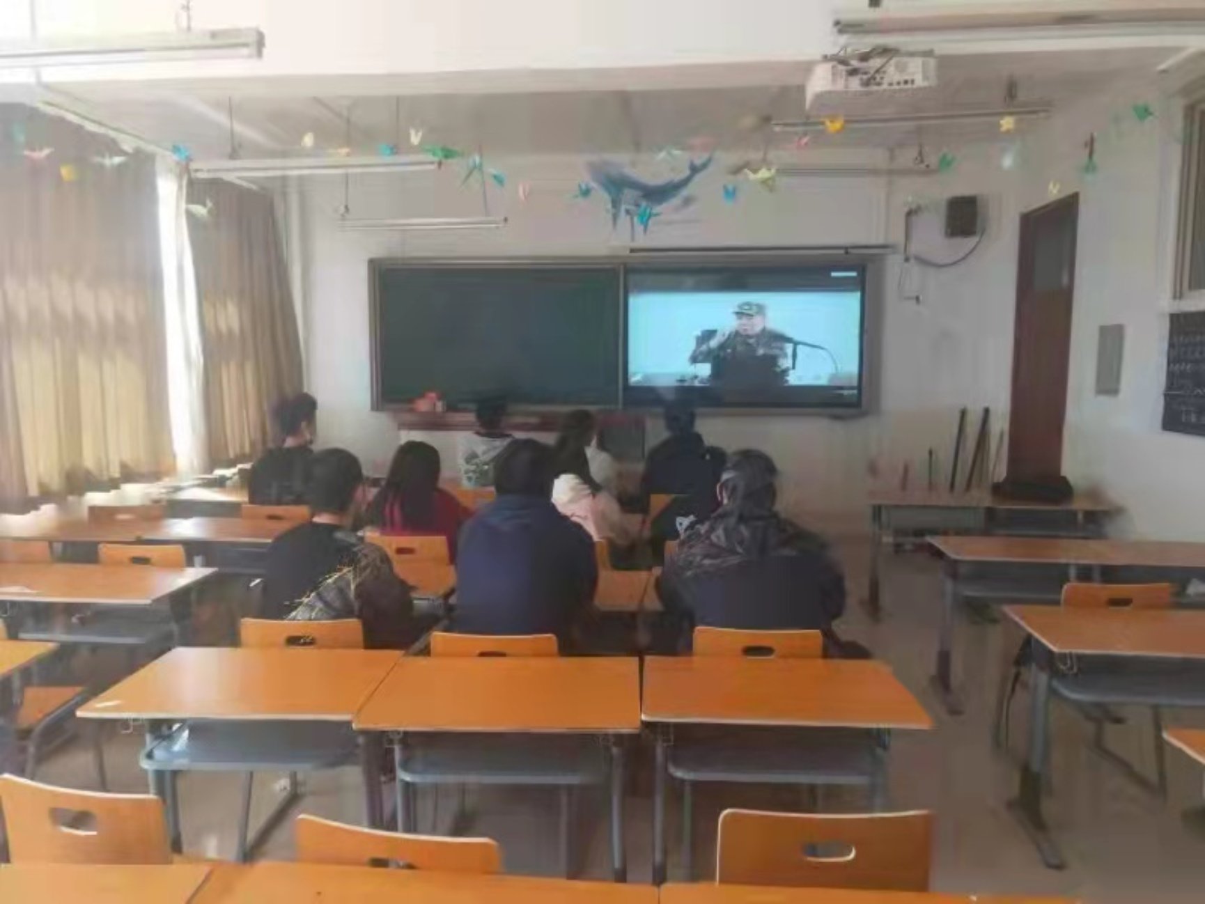 2021年4月14日14点30分,为深入学习贯彻习近平总书记在党史学习教育动员大会上的重要讲话精神,电信学院组织2020级学生在创新楼观看“首都百万师生同上一堂党史课”第三讲----党领导下的人民军队建设历程及其传承的红色基因。