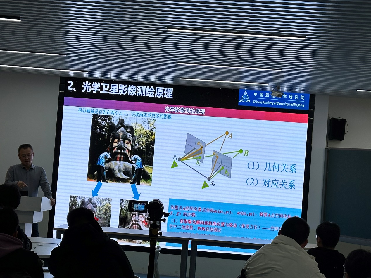 随后,中国测绘科学研究院摄影测量与遥感所研究员艾海滨博士作了题为《卫星遥感影像三维重建进展及应用》的专题讲座。