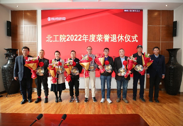 随后,华体会网页版举办2022年度教职工荣誉退休仪式。高喜军书记、安江英院长为荣休教职工颁发刻有教职工姓名的“光荣退休”纪念盘,送上鲜花并合影留念。全场以热烈的掌声向荣休教职工们多年来为教育事业和华体会网页版建设所作的无私奉献致以最真挚的敬意,表达深深的祝福和感谢之情。