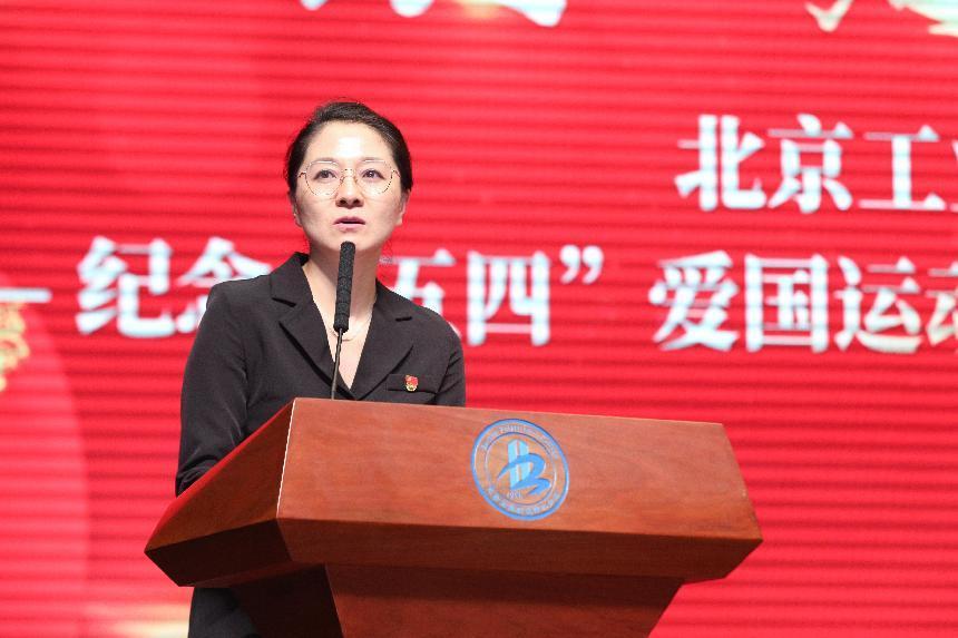 表彰大会在国歌声中拉开帷幕,党委常委、副院长沈莹代表华体会网页版向受表彰的先进集体和个人表示热烈的祝贺!向在座的青年朋友和长期以来致力于青年事业的同志们致以最诚挚的问候和衷心的感谢!她在讲话中谈到,2023年是“十四五”规划和全面开启社会主义现代化建设新征程的重要之年,也是纪念“五四”爱国运动104周年,在这个具有特殊意义的历史时刻,我们纪念五四运动,重温光辉历程,传承五四精神!沈莹副院长结合习近平总书记给中国农业大学科技小院的学生回信精神向同学们提出了四点希望,一是加强习近平新时代中国特色社会主义思想学习,让理想信念在学习中不断坚定;二要树立报国之志,让爱国主义精神在心中牢牢扎根;三要锤炼品德本领,让青年之力在砥砺奋进中淬炼成钢;四要担当时代责任,让青春之花在党和人民最需要的地方绽放。最后,她激励同学们发扬“团结拼搏、求实创新”的北工院精神,为建设特色鲜明世界一流的高职院校而努力奋斗!厚植爱党、爱国、爱社会主义的情感,让红色基因、革命薪火代代传承,为全面建设社会主义现代化国家、实现中华民族伟大复兴中国梦努力奋斗!