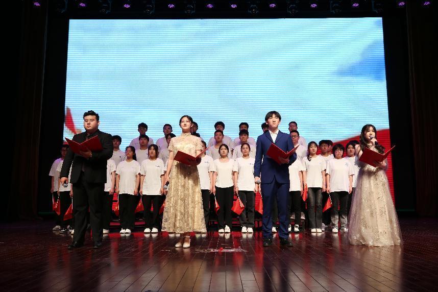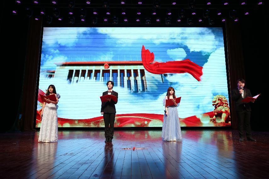 话剧《觉醒》重现了1919年五四运动中的一幕幕场景,团员青年们激昂的斗志,赢得了现场观众的阵阵掌声。配乐朗诵《青春》、朗诵《五四永不熄》展现了当代青年心系祖国富强、胸怀民族复兴的新时代风貌及奋斗精神。文艺汇演的最后,全场师生起立,一起唱响《我和我的祖国》,用嘹亮的歌声抒发对党的热爱,用真挚的情感表达永远跟党走的决心。