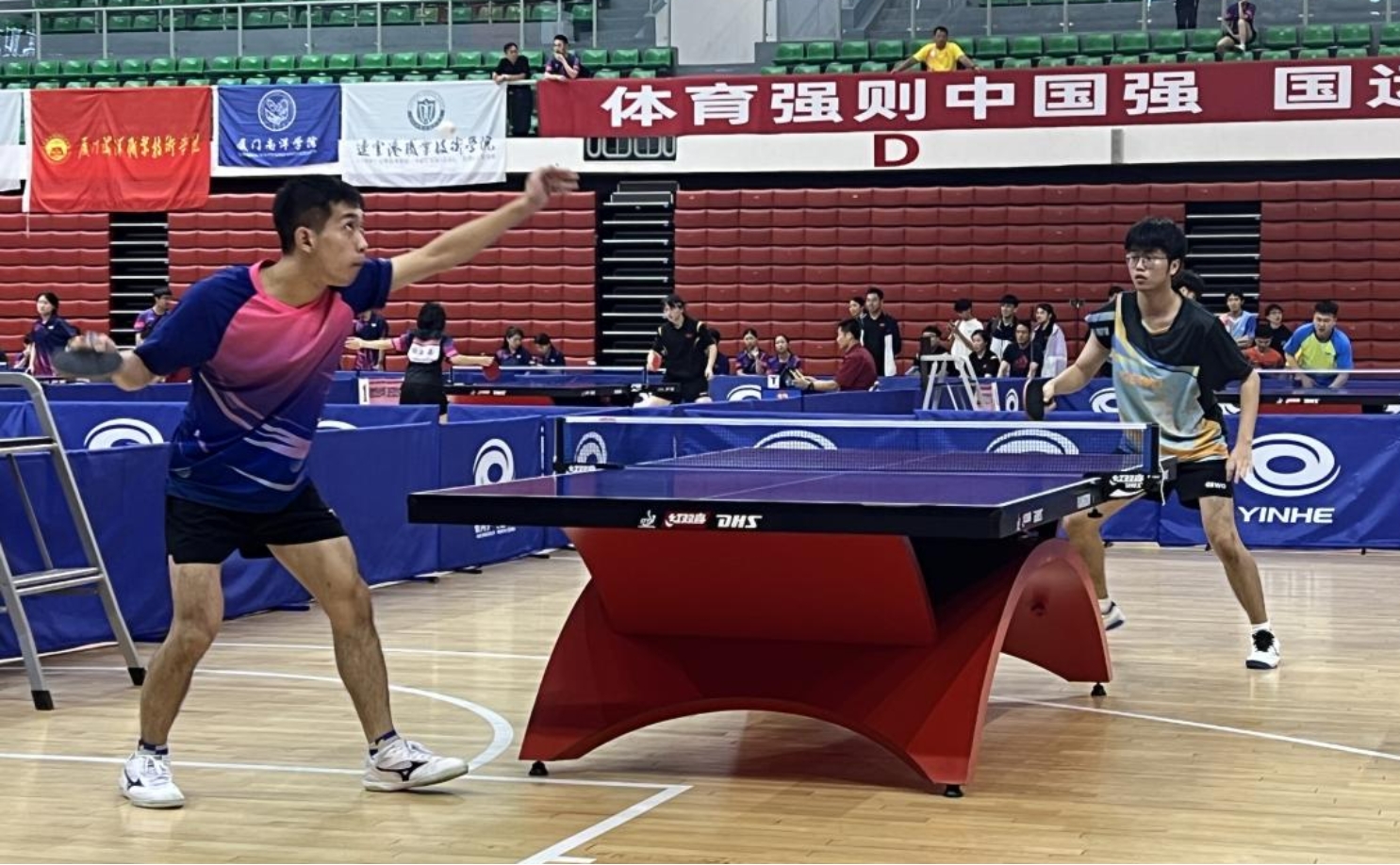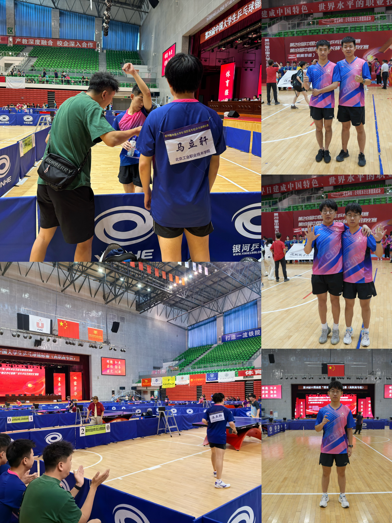 在后续的单项比赛中,我校队员参加了男子双打和男子单打比赛。男双小组赛后,在64对组合单淘汰中,李炼/马立轩最终获得男双第五名的好成绩;男子单打128位单淘汰赛中,牛宗宇和李炼止步于前八,获并列第九名。乒乓球队6位队员三线作战,且能拼到很远,实属不易。