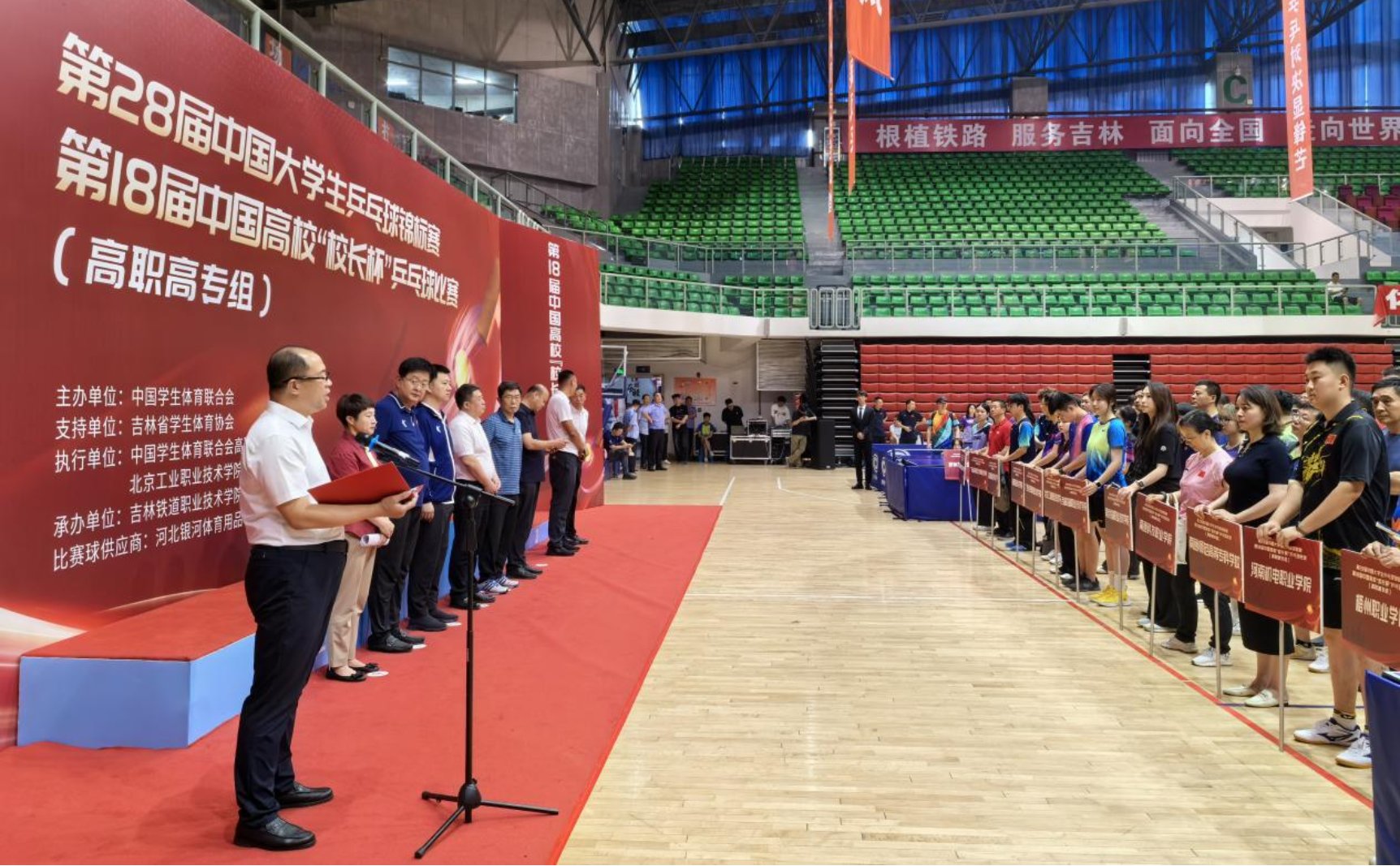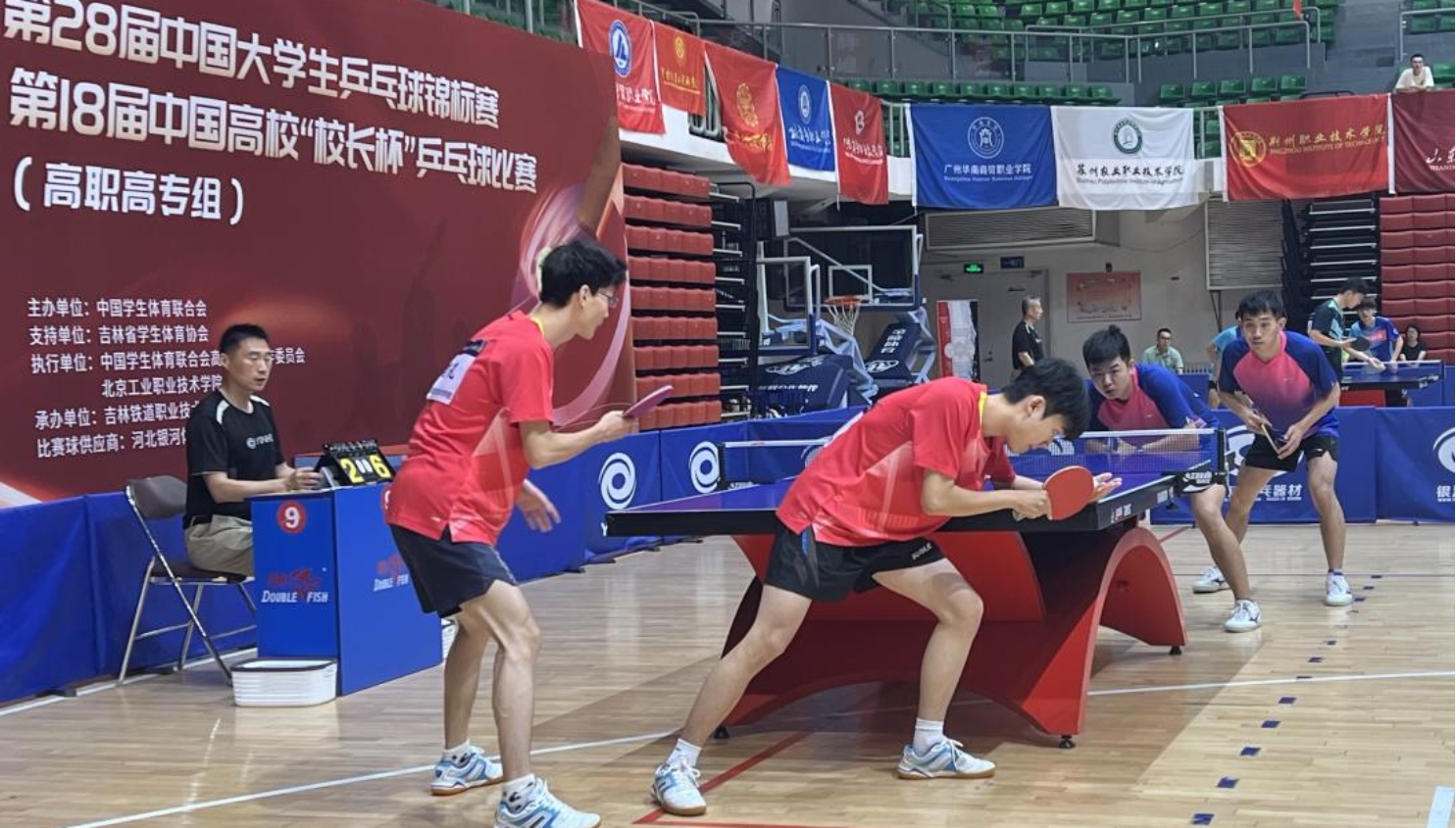 本届赛事由中国学生体育联合会主办、中国学生体育联合会高职院校工作委员会(华体会网页版)执行,共有来自全国38所高职院校312名运动员参赛,汇聚了多省市团体冠军队和单项冠军选手,比赛设男团、女团、男单、女单、男双、女双、混双7个项目。我校由教练员张斌老师带队参加了男子团体、男子双打和单打项目。第18届中国高校“校长杯”乒乓球比赛也在同期举行,有48所高职院校195名校领导参加了“校长杯”乒乓球比赛。中国学生体育联合会高职院校工作委员会主席、我校原院长安江英、校纪委书记钱伟出席了本届比赛的开幕式和颁奖仪式,并代表华体会网页版参加了中年组比赛。