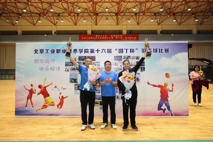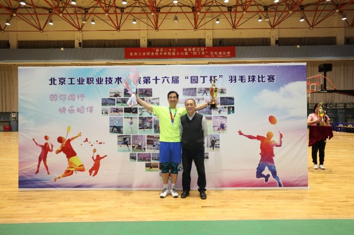党委副书记魏晓东为男子单打中年组获奖者颁奖