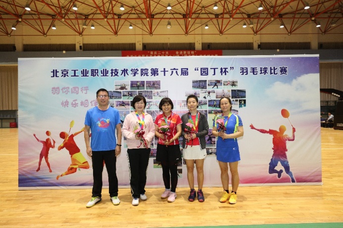 党委常委、副院长冯海明为女子单打壮年组获奖者颁奖