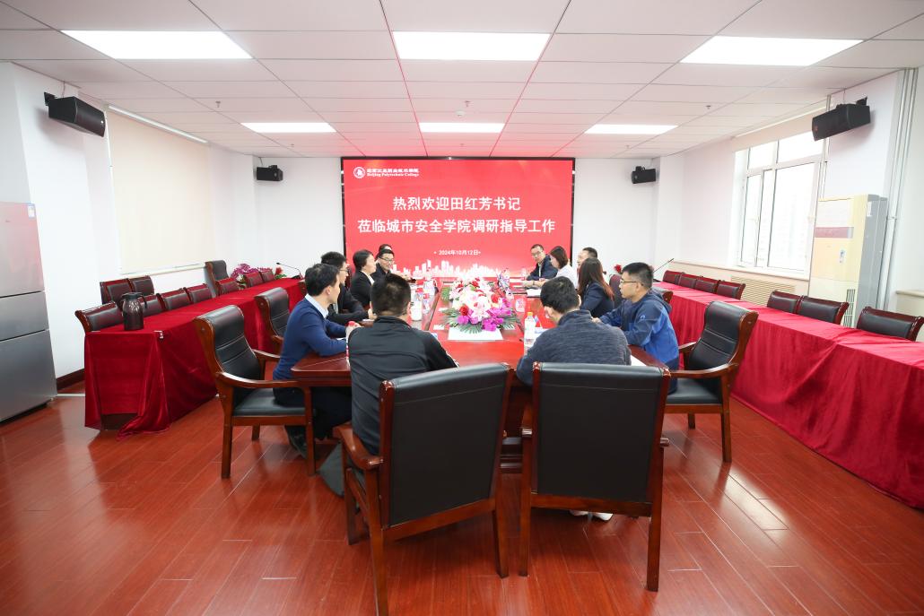 10月12日下午,党委书记田红芳到城市安全学院调研,重点就学院发展、基层党建、人才培养、社会服务等工作进行指导。