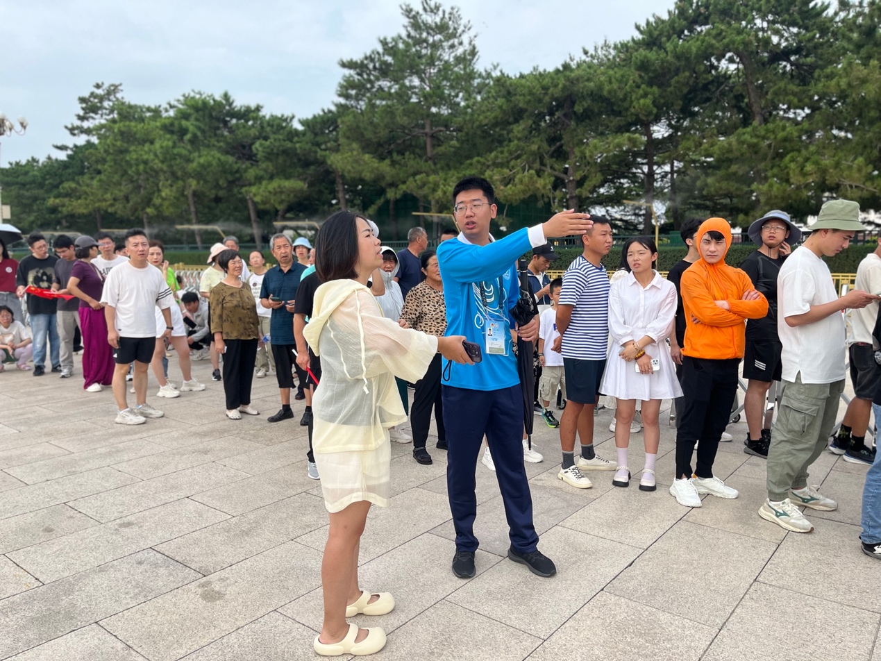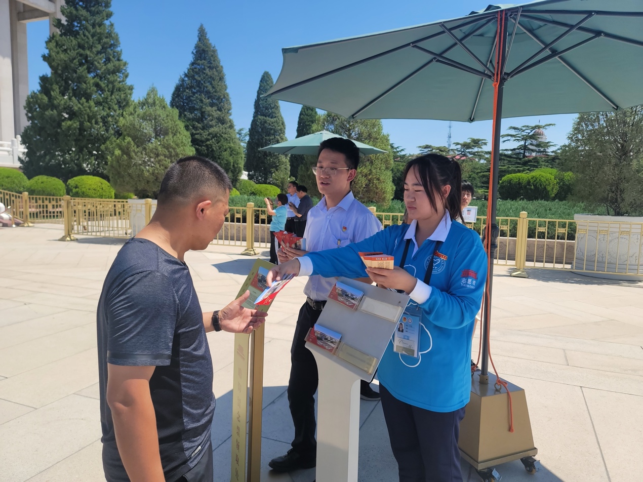 随着纪念堂对外开放,他们有的引导瞻仰群众有序入场,有的耐心解答疑问,还有的帮助老人推送轮椅。教师党员和学生党员冲锋在前最酷最累的岗位上,充分发挥模范带头作用。他们每一个微笑、每一句问候都传递着温暖与关怀,成为了纪念堂内一道亮丽的风景线。