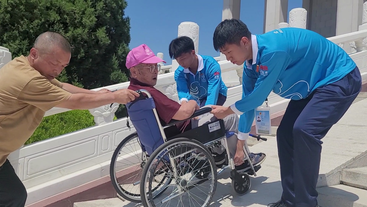 冯子洋、王元硕帮助行动不便人员顺利进入北大厅
