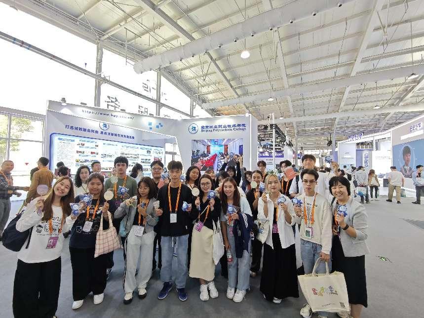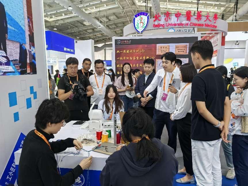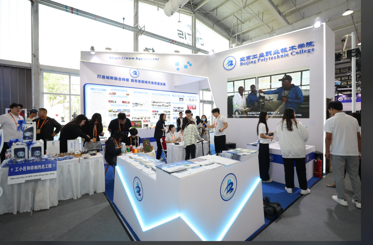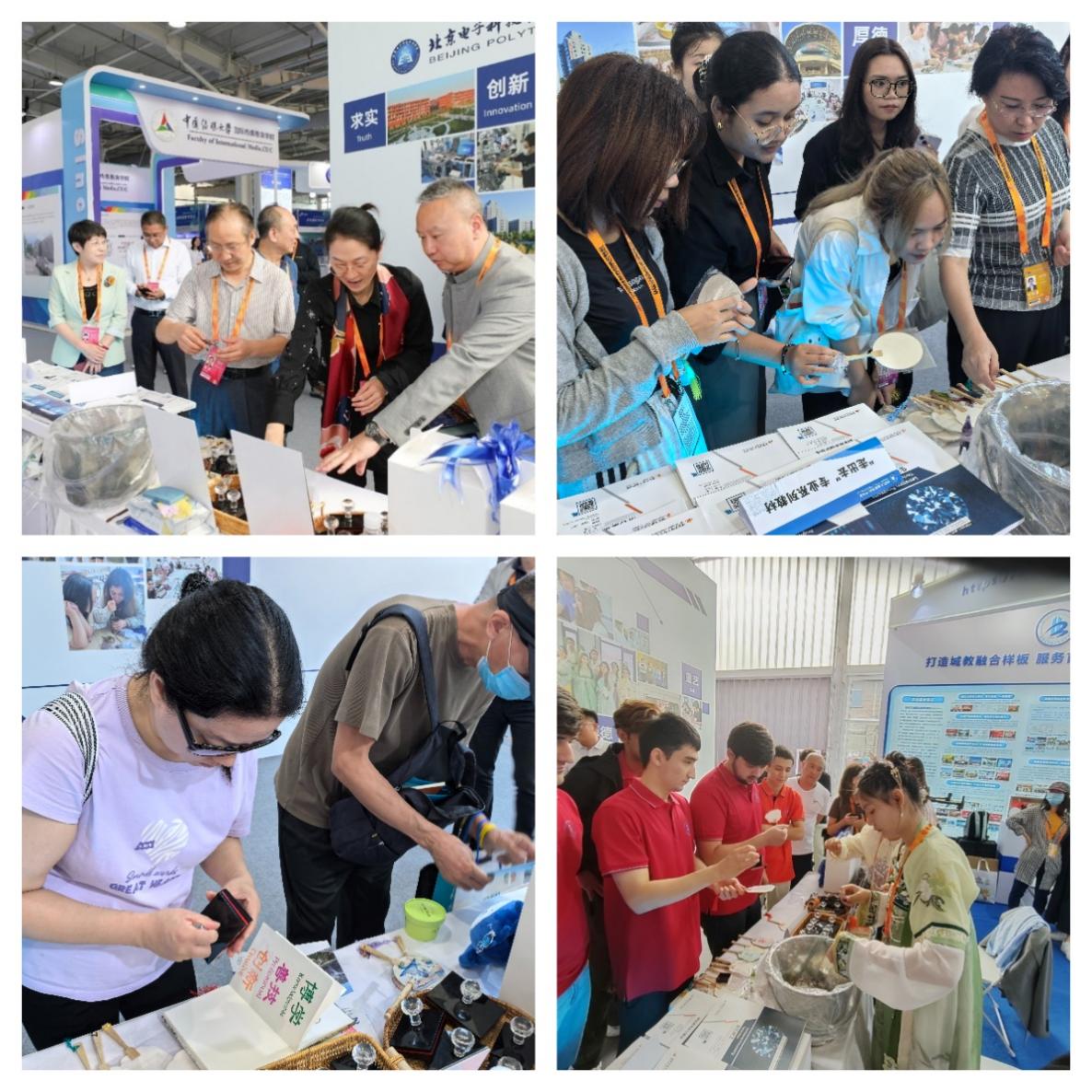 今年北工院线下展厅与往年相比又有了创新与亮点,除了展厅展示墙及和海外教学专业标准、专业教材、国别研究报告等实物展示之外,还将北工院优势专业、特色职业技能项目做了精彩的场地空间展示,包括智能机器人操控、国家级非遗玉雕项目、珠宝编绳以及“互联网+”创新创业大赛国赛获奖项目等优质成果的展出,我校电商直播专业的学生也全程积极参与进来,对服贸会盛况和我校办学成果展示进行了现场直播,精彩纷呈,趣味十足,收获了很高的点击率,也引来无数参观者驻足观看,成为教育专题展区的一大特色。