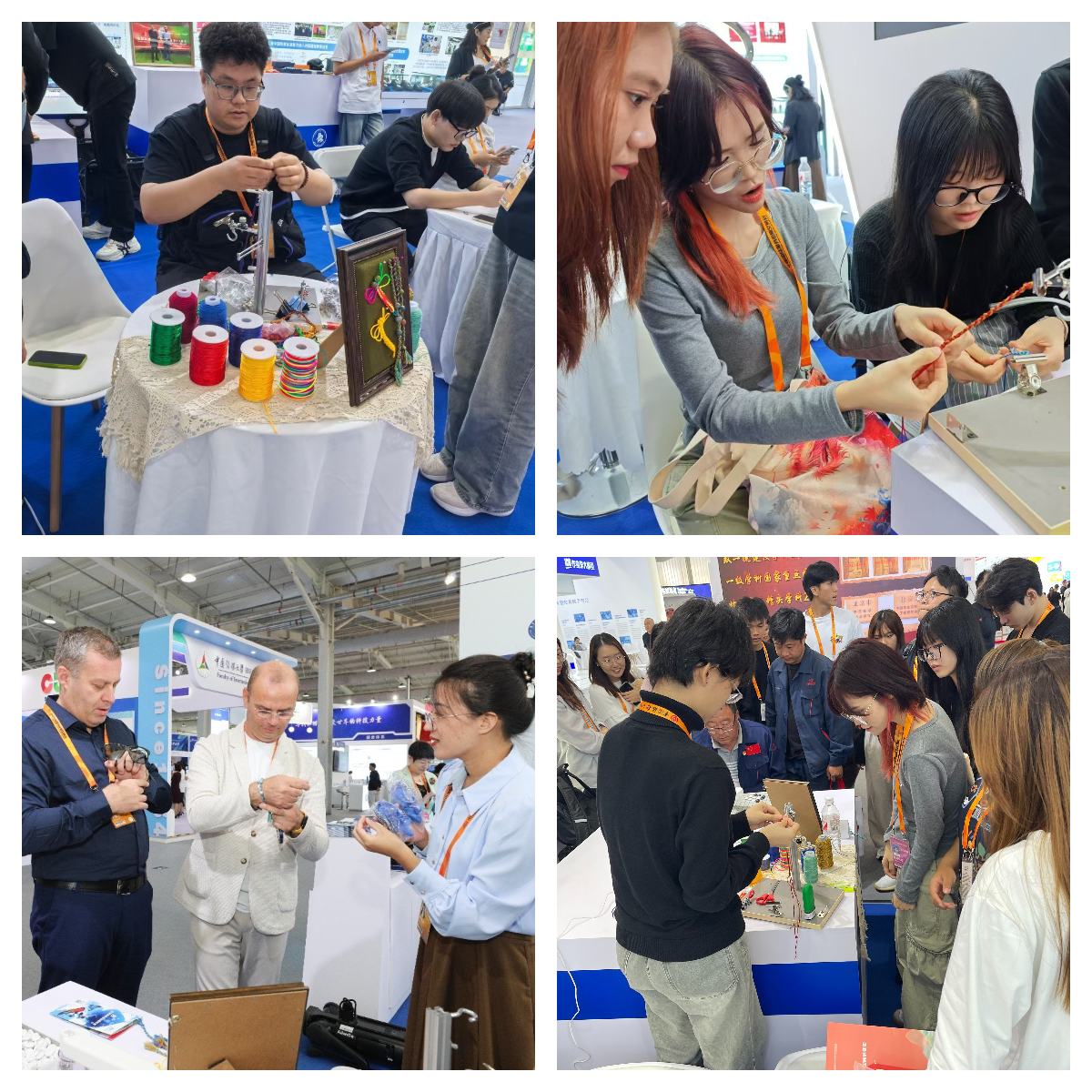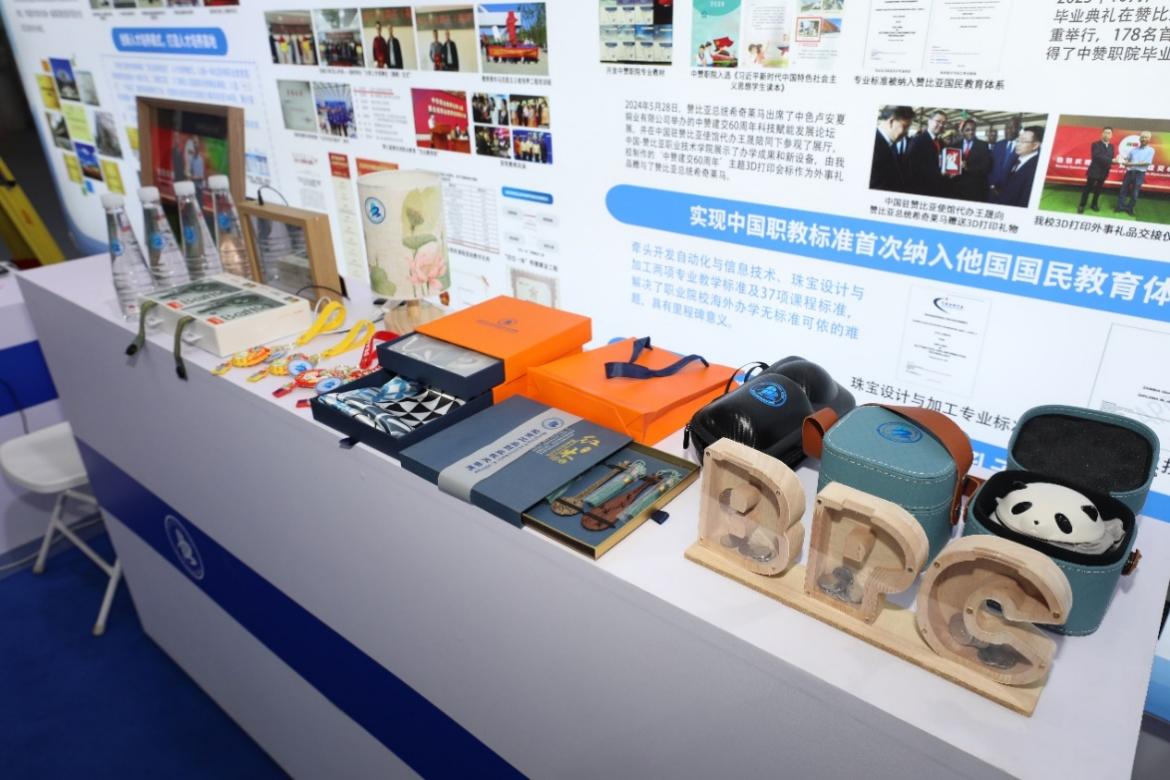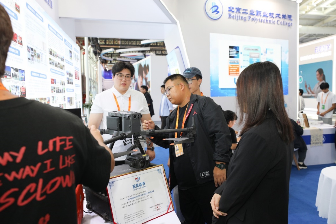 今年北工院线下展厅与往年相比又有了创新与亮点,除了展厅展示墙及和海外教学专业标准、专业教材、国别研究报告等实物展示之外,还将北工院优势专业、特色职业技能项目做了精彩的场地空间展示,包括智能机器人操控、国家级非遗玉雕项目、珠宝编绳以及“互联网+”创新创业大赛国赛获奖项目等优质成果的展出,我校电商直播专业的学生也全程积极参与进来,对服贸会盛况和我校办学成果展示进行了现场直播,精彩纷呈,趣味十足,收获了很高的点击率,也引来无数参观者驻足观看,成为教育专题展区的一大特色。