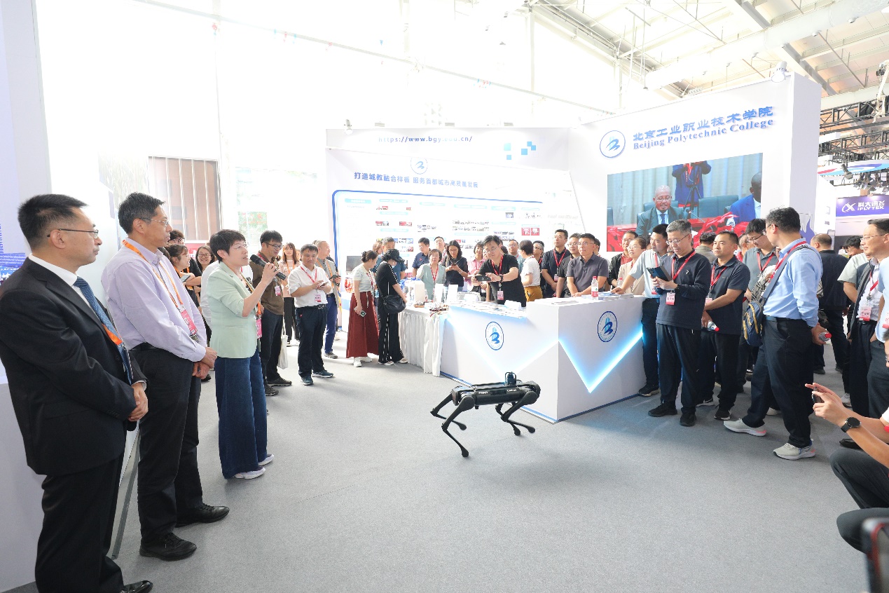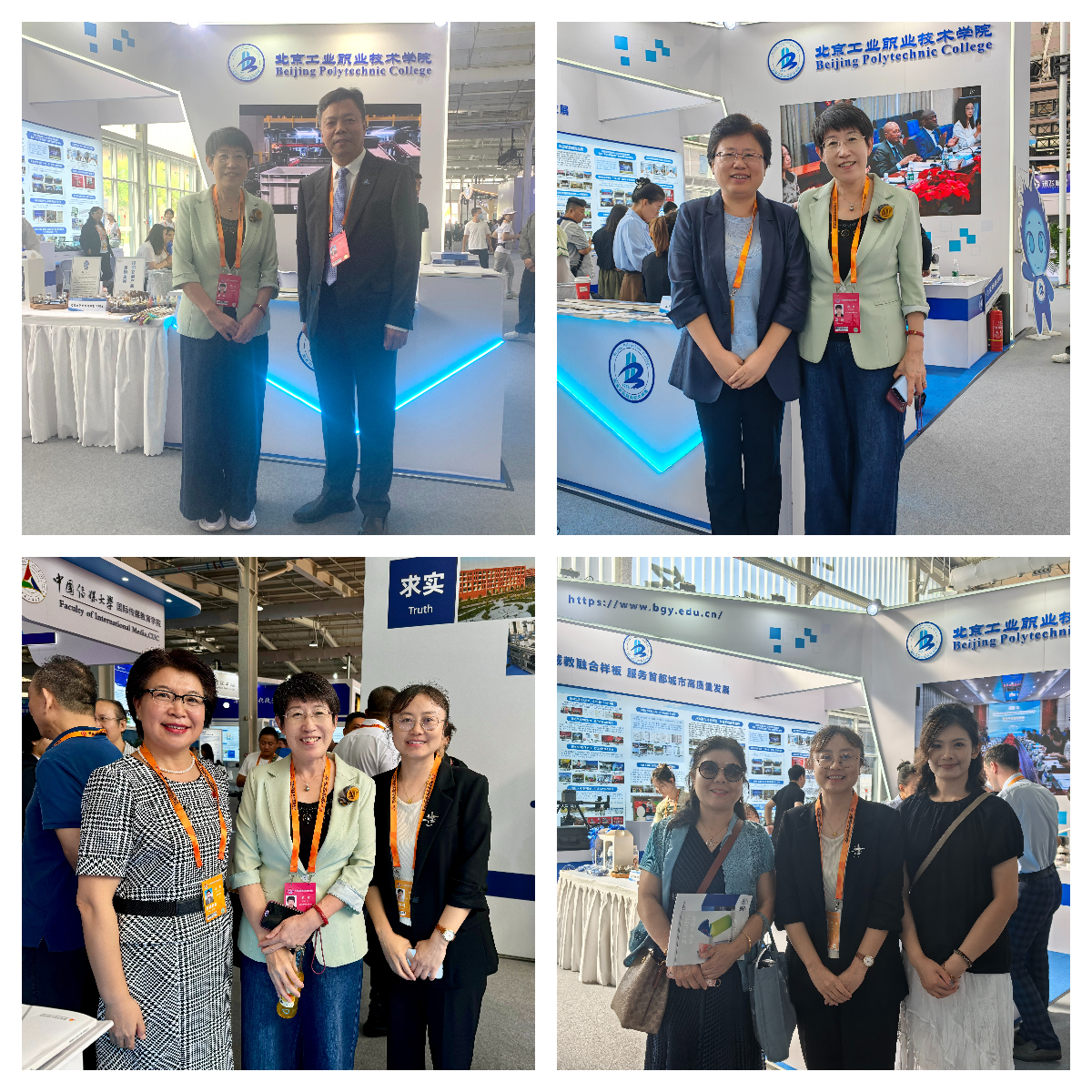 国务院部委领导、北京市副市长马骏、北京市委教工委副书记、北京市教育委员会主任李奕、北京市教委副主任魏旭斌、北京市纪委市监委驻市委教育工委纪检监察组组长易帅东、北京市教育国际交流协会会长黄侃、北京市教委国际处董川处长、教委国际处四级调研员刘皓等多位领导莅临我校展位,国家教育行政学院高校校长培训班一行70人等观看了我校职业技能展示,高度肯定了我校国际化特色办学成果并提出指导意见,充分肯定了我校近年来在“双高”建设中取得的成绩,以及在国际化相关工作中取得的丰硕成果,表达了鼓励与支持开展“中文+职业技能”相关领域工作的意愿,并嘱托我校要以教育家的情怀,办好让人民、让企业满意的教育,以职业教育优势服务国家共建“一带一路”,服务国际产能合作。