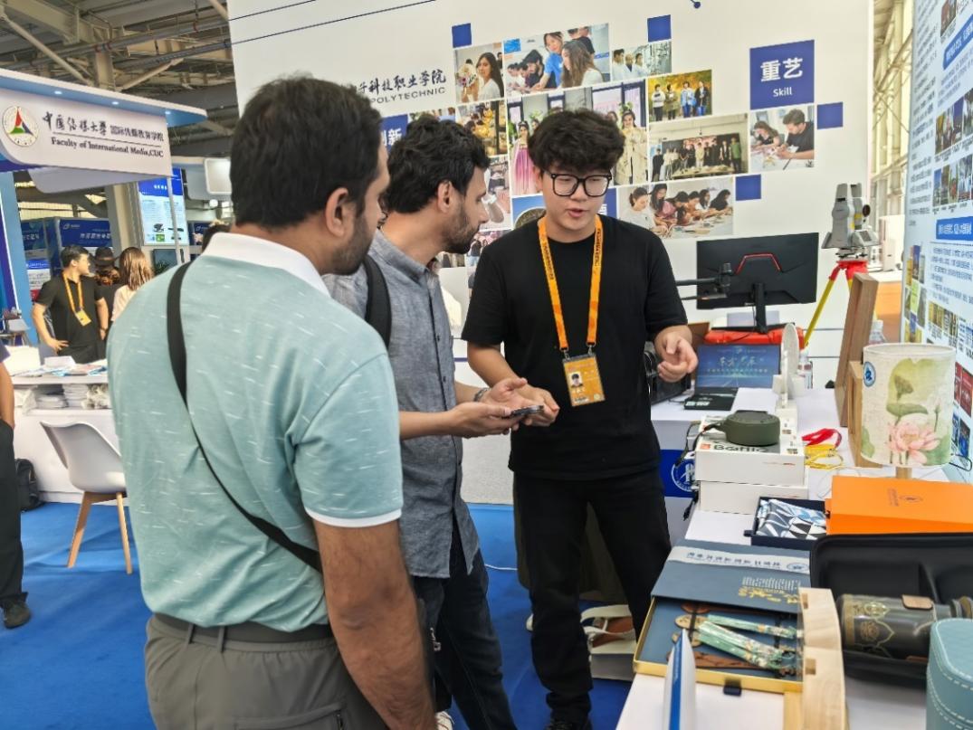展会期间,不断有观展人员驻足我校展台,观看生动活泼的机器人展示、展示墙和宣传视频,体验我校文创产品,向讲解人员详细了解我校各方面办学情况。会展期间共接待观众近千人,相关团体百余家。大家对我校办学取得的成绩十分关注,多家团体表达了在海外合作办学、专业对接、留学生培养、职业技能培训等方面,希望与华体会网页版展开合作。
