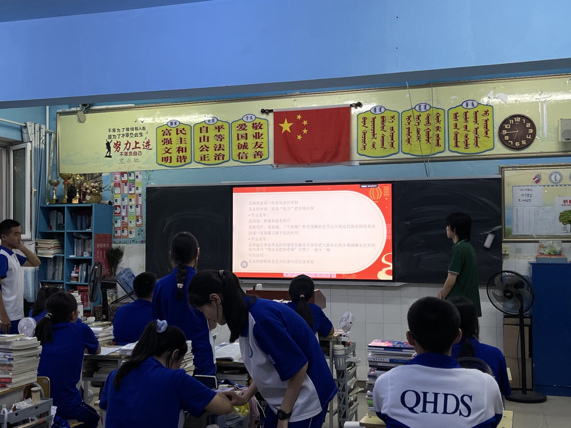 共诵一首诗。实践团成员带领学生共同朗诵现代诗《什么是年》,通过朗读作品让学生们感悟诗中所饱含的作者对家乡、对亲人的深深眷恋之情,增强学生对中华传统节日春节的认知,铸牢中华民族共同体意识。