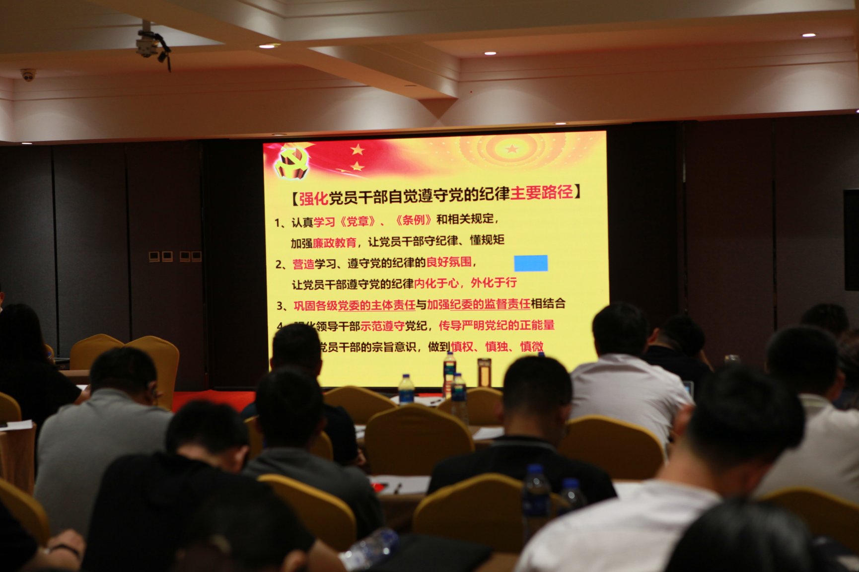 王健教授以《加强党的纪律建设,提升组织凝聚力》为题,围绕党的纪律主要内容、违反党的纪律处理方式、强化党员干部自觉遵守党的纪律主要路径三个方面进行授课,突出强调新时代的纪检监察干部要在学纪知纪明纪守纪,打造过硬纪检委员队伍夯实思想基础。