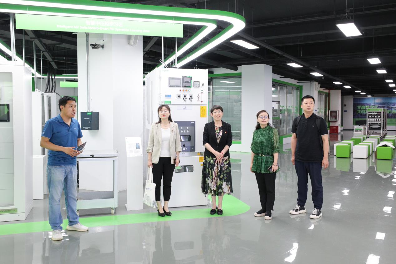 岑咏副校长一行先行参观了我校中法能效管理应用人才培养和研究中心,“中文+职业技能”教育实践与研究基地等各实训中心和基地,了解了我校先进的教学实训设备以及相关行业领先应用场景及专业数字化教学开展情况,并对我校各实训基地建设给予了高度赞许。