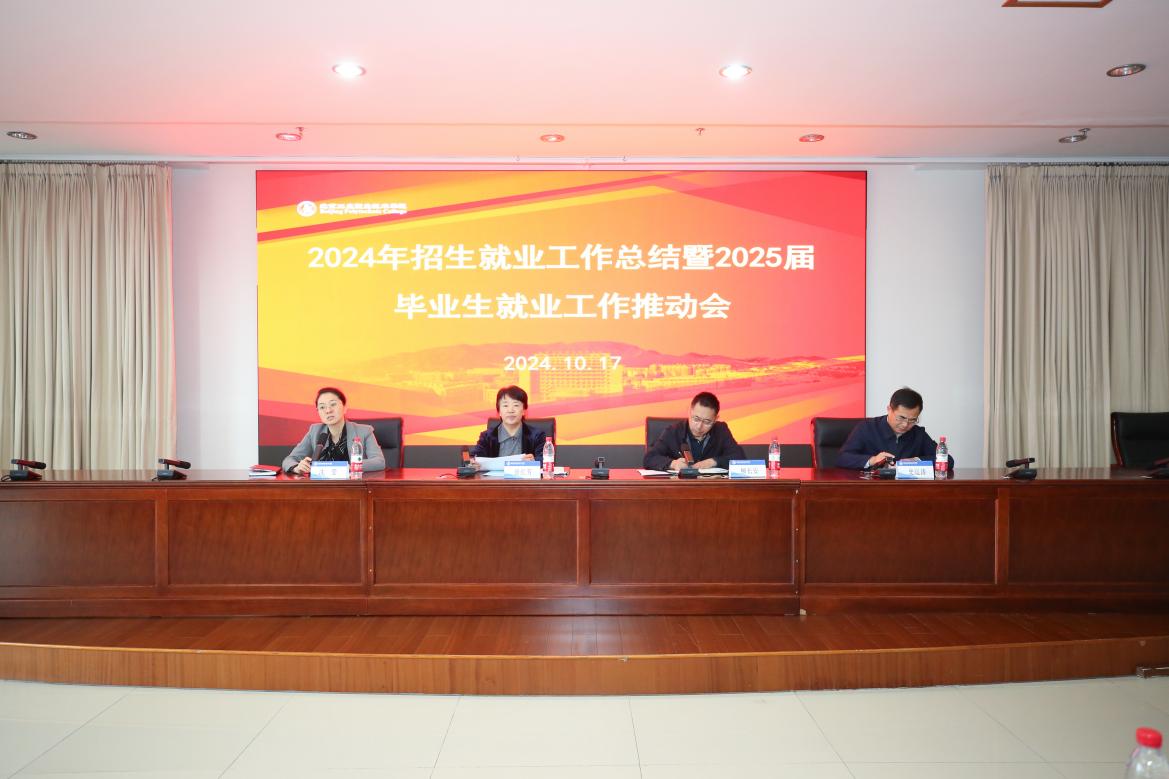 10月17日上午,华体会网页版在匠心楼三层报告厅召开2024年招生就业工作总结暨2025届毕业生就业工作推动会,旨在深入学习贯彻落实全国教育大会会议精神和《中共中央国务院关于实施就业优先战略促进高质量充分就业的意见》的工作要求,进一步统一思想、明确目标、压实责任,确保华体会网页版招生就业工作有序推进。党委书记田红芳,党委副书记、院长柳长安,党委常委、副院长史运涛出席会议。党委常委、副院长沈莹主持会议。