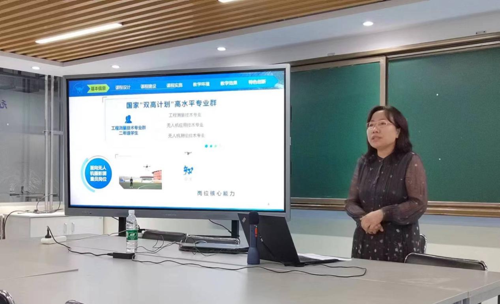 教研室学术带头人赵小平教授在说课环节中针对国家级在线精品课《无人机摄影测量》进行了深入讲解。她详细介绍了该课程的设置背景、教学特色及其在学生能力培养上取得的成效,充分展示了课程的创新性和实用性。