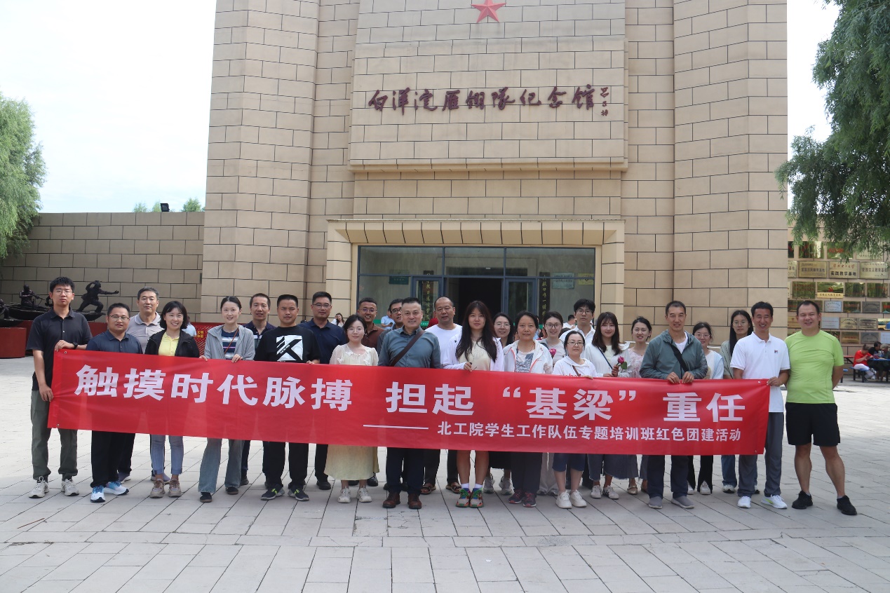 2024年8月28日-29日“触摸时代脉搏 担起“基梁”重任——北工院学生工作队伍专题培训班红色团建活动”围绕雄安新区规划建设、理想信念教育、爱国主义教育、弘扬红色精神主题,赴雄安市民服务中心、雄安新区规划馆、白洋淀雁翎队纪念馆和狼牙山五壮士纪念馆集中开展红色实践教育活动。