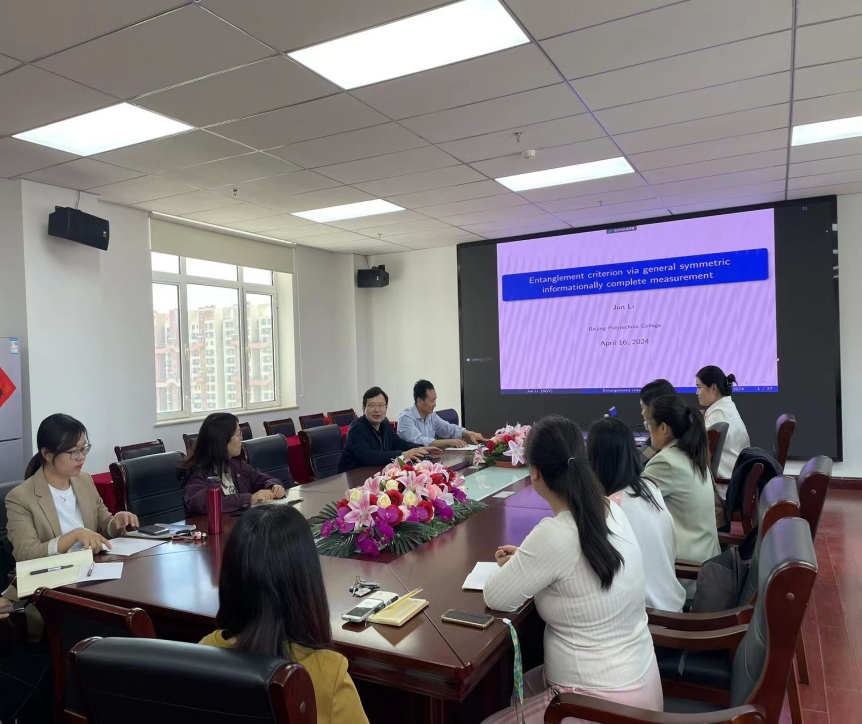 在讲座中,李君老师围绕“基于GSIC测量的纠缠判据”的主题,分享了自己在博士期间研究成果,基于对称信息完全算子研究量子态的纠缠性,给出了多体量子系统的纠缠判断准则;高莉老师则就“语言国际传播力研究”进行了深入探讨,从跨学科视角建构语言国际传播能力,以历时和共时两个维度相结合的方式探讨语言国际传播能力,并以指数形式对语言国际传播力进行定量评价,构建语言国际传播力的格局,以助力中文的国际传播。活动中,教师们积极发言、提问,现场气氛热烈。