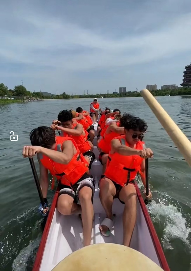 无论是在校内还是校外训练,所有的队员均认真听从教练指挥,始终以“团队”为基准。不论是男生还是女生,龙舟队队员手上反反复复磨泡、流血,他们依然不会轻易把桨放下;即便是被晒黑、脱皮,他们也没有减轻对体育的热爱,他们始终相信努力不会白费,时间会给出答案,比赛是证明自己的最好方式,充分展现了我校的体育精神。