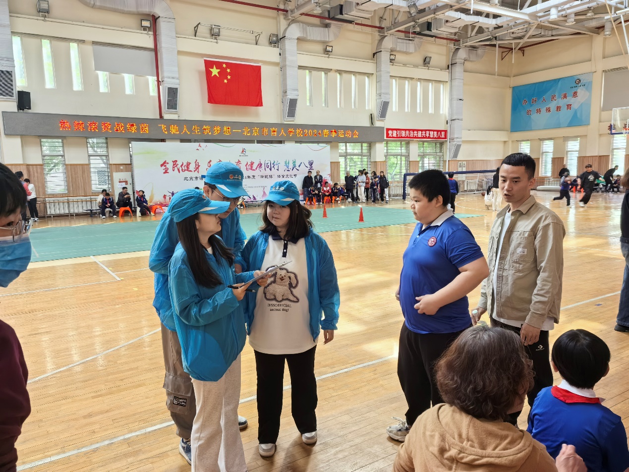 运动会开幕式上,建筑与测绘工程学院学生入党积极分子统一身着蓝色志愿服,排成整齐的志愿者方队高喊“北工职院、厚德博学、善技创新”的口号走过操场,带给盲校一抹纯洁的“天空蓝”。运动会中,入党积极分子分布到各个体育项目区域内协助体育老师工作,从检录到正式比赛,有序组织孩子们参加比赛,无时无刻不展示着他们奉献友爱的志愿者精神风貌,将我校浓厚的校训文化精神融入志愿服务活动中。