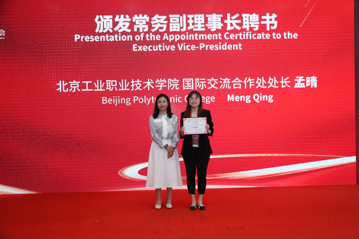 大会经过充分的酝酿和讨论,与会代表一致通过了《京津冀职业教育国际化合作发展联盟章程》,明确了联盟的宗旨、任务、组织架构和运行机制等。大会选举产生联盟第一届理事会理事长单位、常务副理事长单位、常务理事单位、副理事长单位等并聘任各主要岗位,成立联盟专家工作委员会并聘任国内外30余名知名学者担任特聘专家、特聘外籍专家,为联盟的规范运作和长远发展提供了有力的组织保障。随后,举行了隆重的揭牌仪式,与会领导和嘉宾共同见证了这一历史性的时刻。我校担任常务副理事长单位,国际处处长孟晴担任联盟常务副理事长职务、国际处王瀛担任常务副秘书长职务。