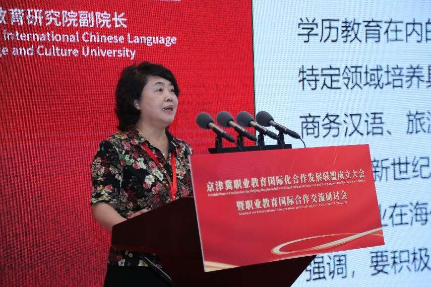 北京语言大学国际中文教育研究院副院长姜丽萍作题为《“中文+职业技能”教育的发展现在、特征以及未来展望》的主旨发言