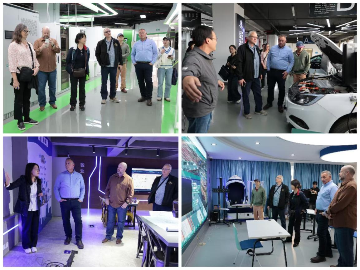 来访客人参观了我校中法施耐德能效管理应用人才培养和研究中心、汽车实训基地、3D打印实训中心、智能机器人实训中心、BIM实训中心、智慧工地实训中心等,对我校理实一体化的教学模式和优质的实训条件给予高度赞赏和肯定。