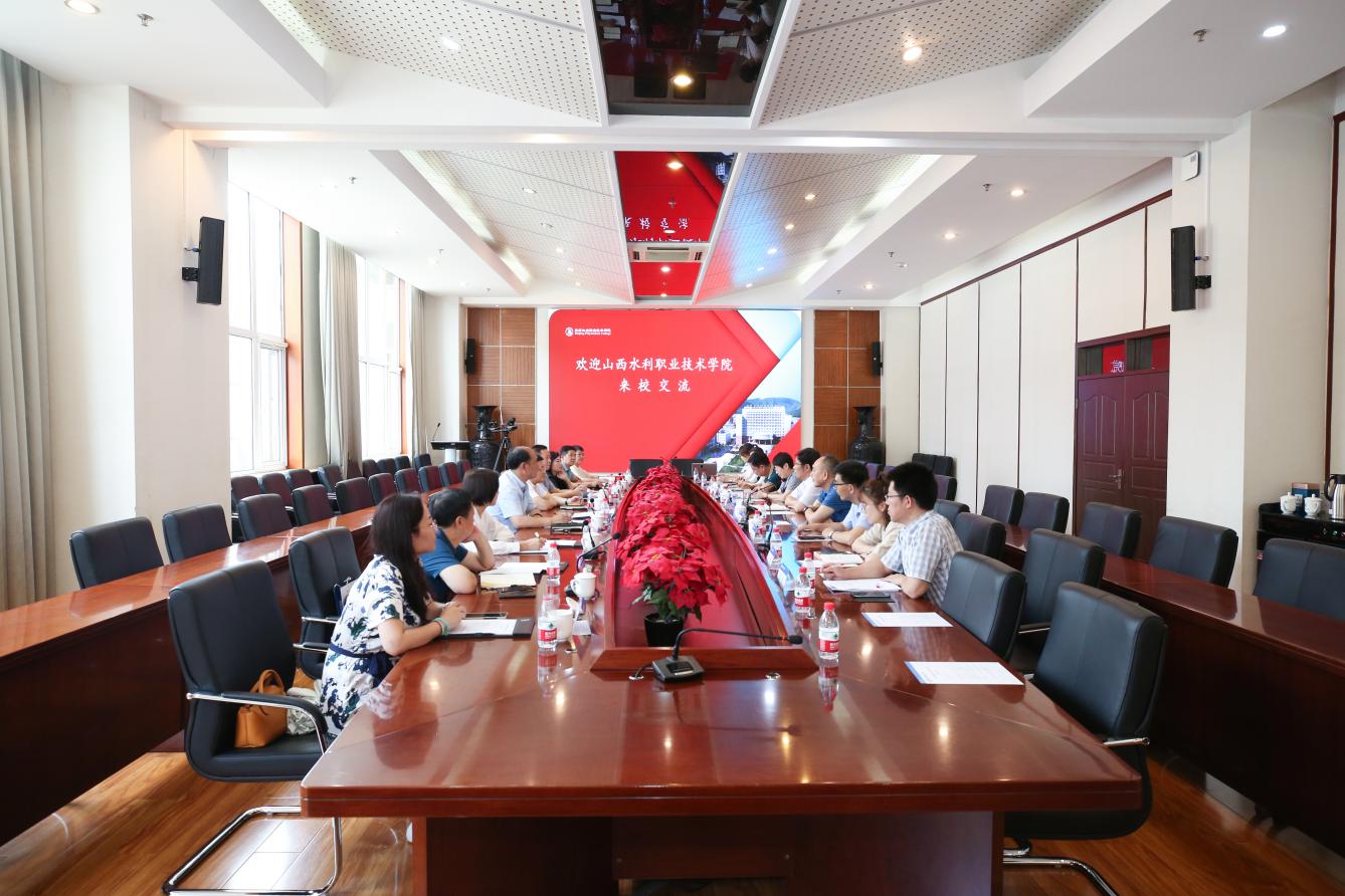 7月6日,山西水利职业技术学院党委书记马皖东,党委副书记杨志辉,党委委员、副院长岳延兵等一行9人来我校调研交流。我校党委副书记、院长安江英,党委副书记魏晓东,党委常委、副院长周燕参加此次调研交流。