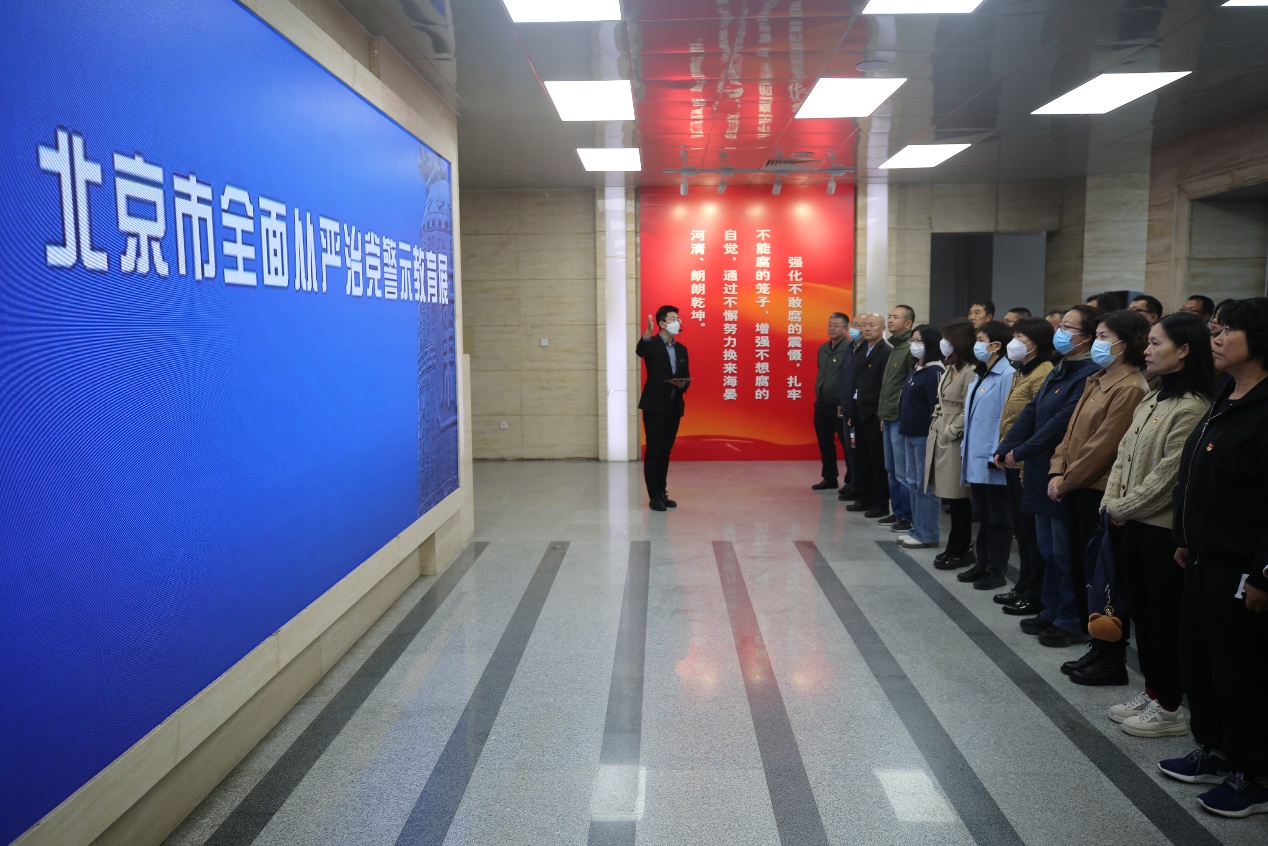 为更好地提升中层干部队伍政治素质,扎实推进纪检监察干部队伍教育整顿工作,增强教职工风险责任意识和廉洁自律意识,进一步铸牢拒腐防变思想防线,使全体党员干部存敬畏、知戒惧、明行止、守底线。2023年11月3日上午,根据“‘青’廉月谈”主题活动计划,在党委常委、纪委书记钱伟的带领下,校纪委组织中层干部、专兼职纪检干部、巡察干部共60余人,前往北京市全面从严治党警示教育基地参观学习。党委常委、副院长周燕出席了学习活动。