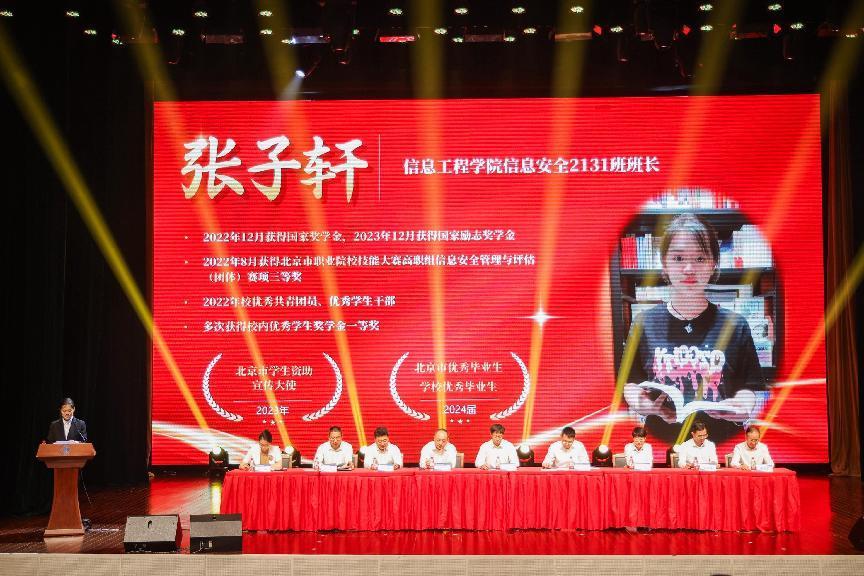 在热烈的氛围中,党委常委、副院长史运涛宣读《关于准予2024届1398名学生毕业的决定》;党委副书记魏晓东宣布布了《关于2024届优秀毕业生的表彰决定》,70人被评为北京市优秀毕业生,140人被评为华体会网页版优秀毕业生。