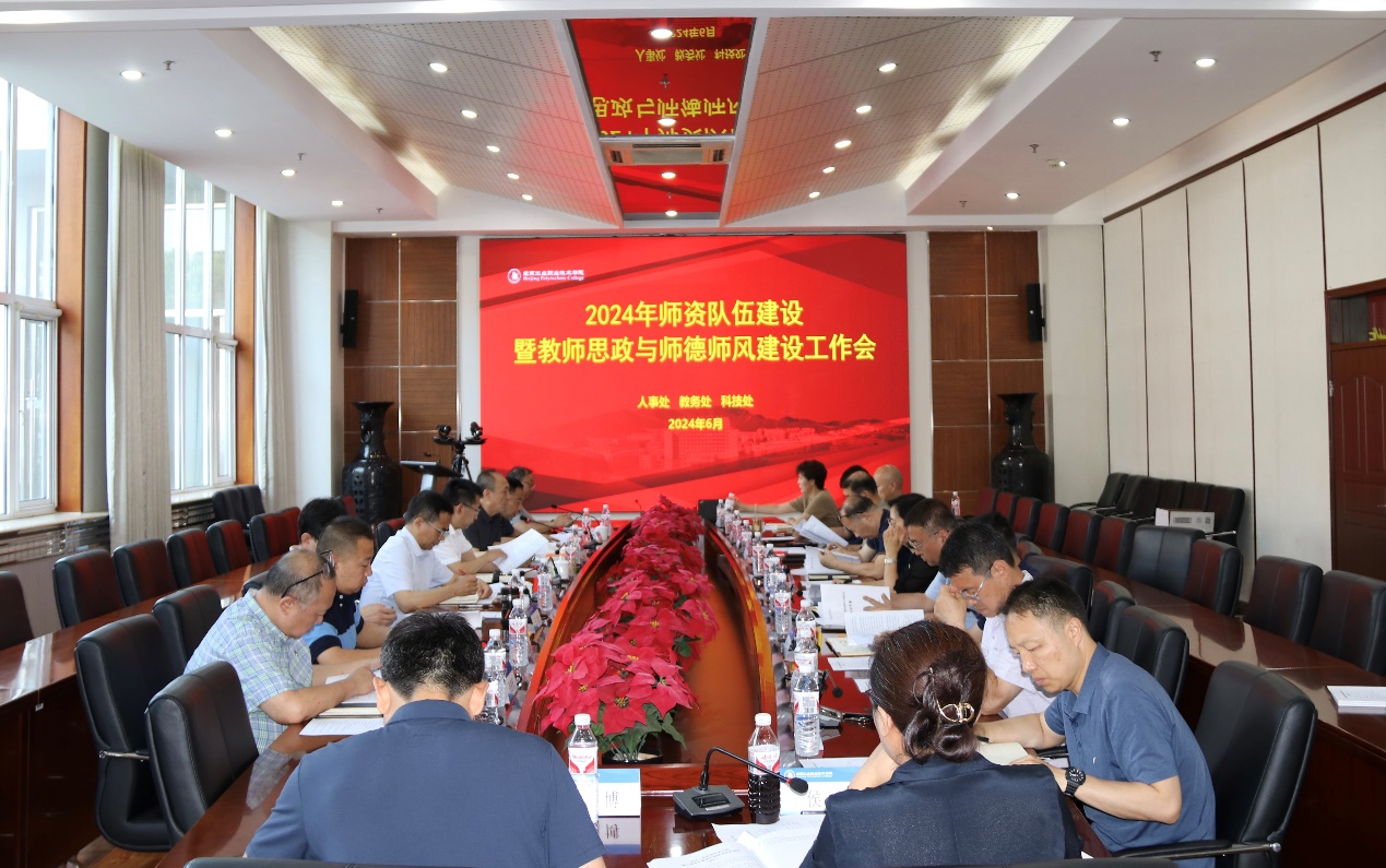 2024年6月12日下午,我校在匠心楼第四会议室召开2024年师资队伍建设暨教师思政与师德师风建设工作会。党委副书记、院长柳长安,党委副书记魏晓东,党委常委、副院长史运涛出席会议,华体会网页版人事处、教务处、科技处以及各二级院部党政负责人参加了此次会议。会议由党委副书记魏晓东主持。