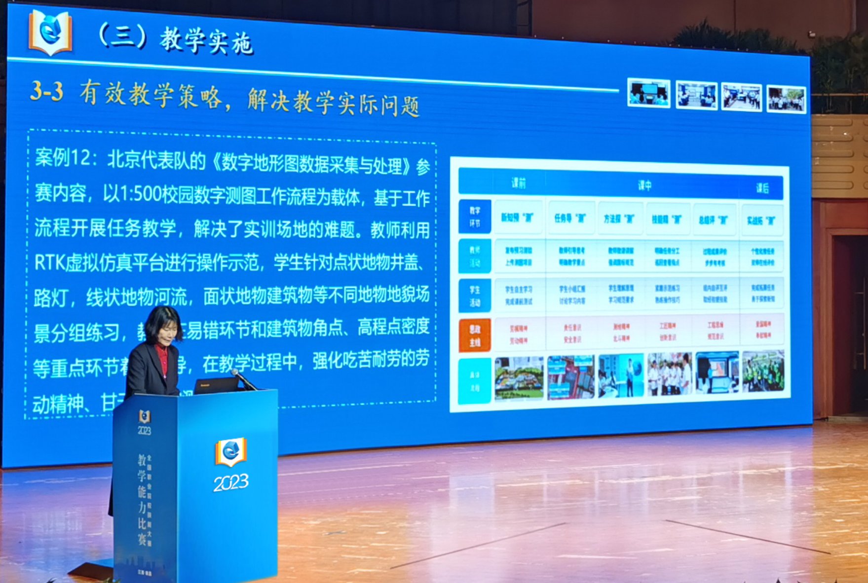 建筑与测绘工程学院获奖团队,在长达八个月的备赛过程中,团队紧紧抓住学科特色,精心构思、精打细磨作品,融入工匠精神、新时代北斗精神及测绘精神整合教学内容,将课程思政融入教学全过程,设计了一闭环两保障三环节四进阶的教学模式,充分展示了团队教师扎实的基本功、先进的教学理念和职业素养,展现出华体会网页版的自信和风采。