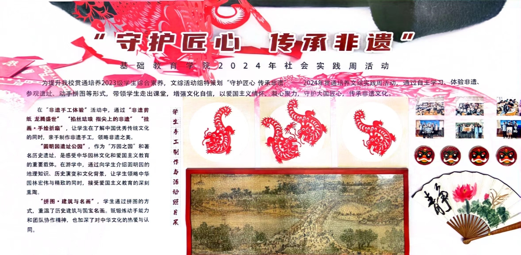 5月6日-5月17日,基础教育学院举行了为期两周的社会实践周活动。作为基础教育学院品牌活动,本次活动以“匠心传华夏 科技创未来”为主题,学生分别参加文综组、理综组、英语组,形成三支学科特色鲜明的实践队伍,走出课堂,奔赴“热爱”。