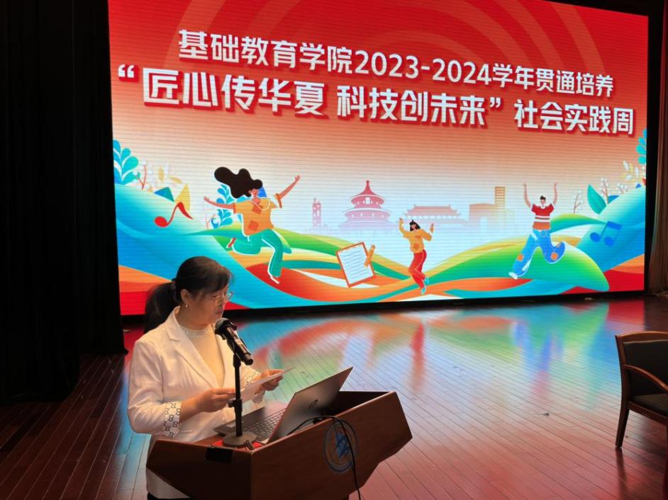 5月6日上午9点,基础教育学院在华体会网页版礼堂举行“2023-2024学年贯通培养社会实践周开幕式”。实践周以“匠心传华夏 科技创未来”为主题,旨在增强学生爱国情怀,守护大国匠心,增强文化自信。