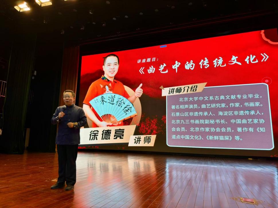 中华文化源远流长,华夏文明万古长青。习近平总书记在“文化传承发展座谈会”上提到:“只有全面深入了解中华文明的历史,才能更有效地推动中华优秀传统文化创造性转化、创新性发展。”现代文明的发展需要厚植于传统文化的肥沃土壤。“江山代有才人出,各领风骚数百年”,本次讲座通过弘扬中华优秀传统文化,让学生切实感受到非遗曲艺魅力,进一步坚定文化自信,促进学生全面发展。