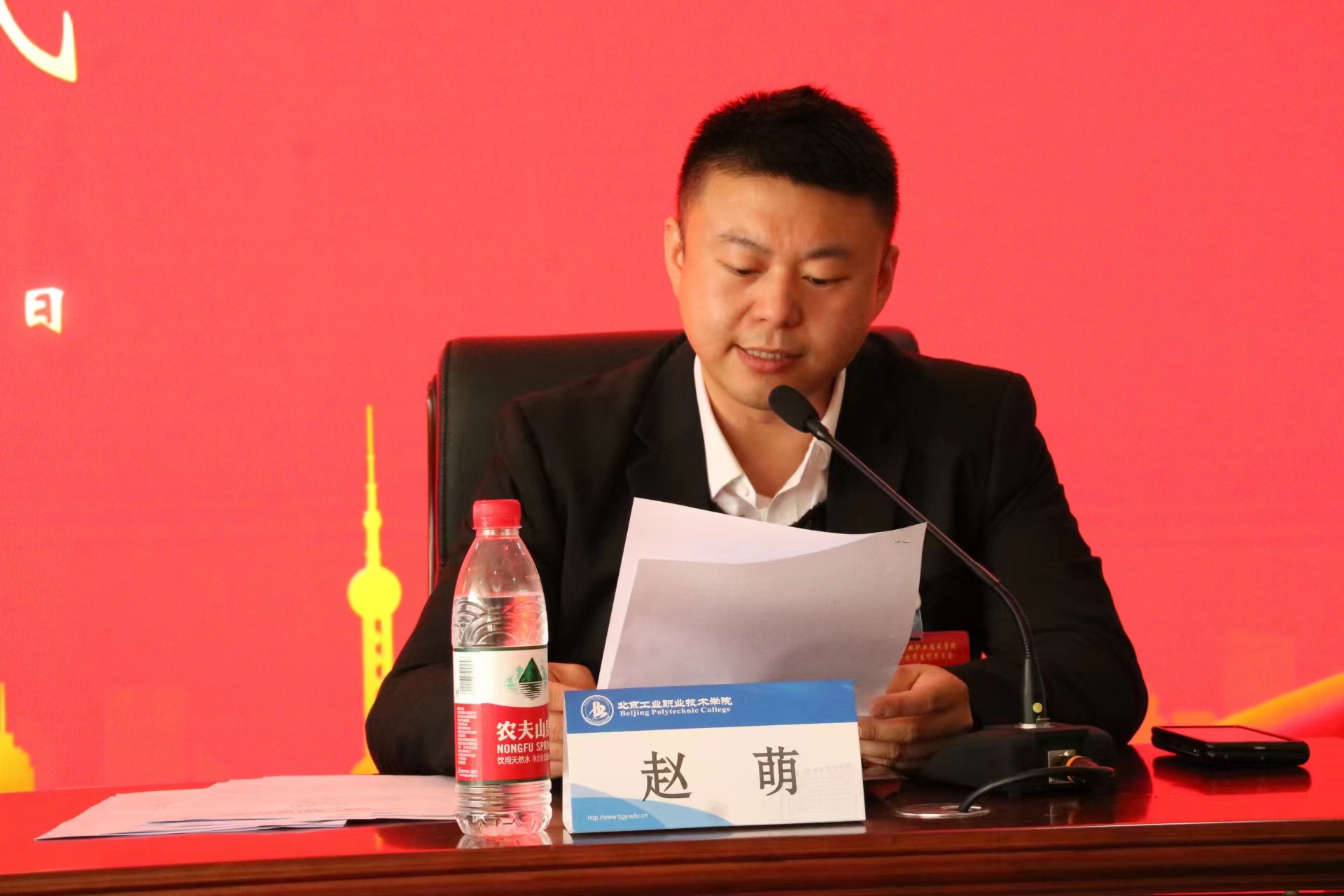 北京学生联合会驻会执行主席孙丰恺代表北京市学联致辞,他对我校学生会的工作给予了充分的肯定,并希望我校学生会继续用思想引领青年、用初心联系青年、用实干服务青年、用行动激励青年。