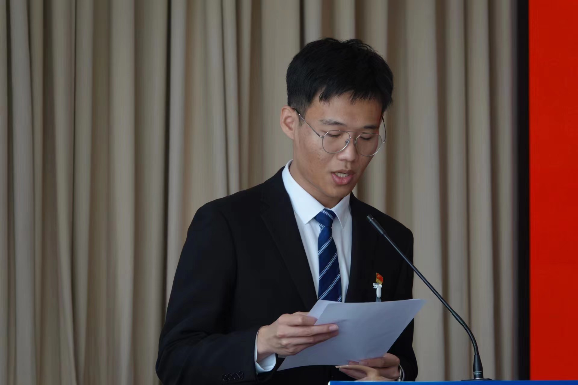学生会主要负责人要鹏宇向大会做报告