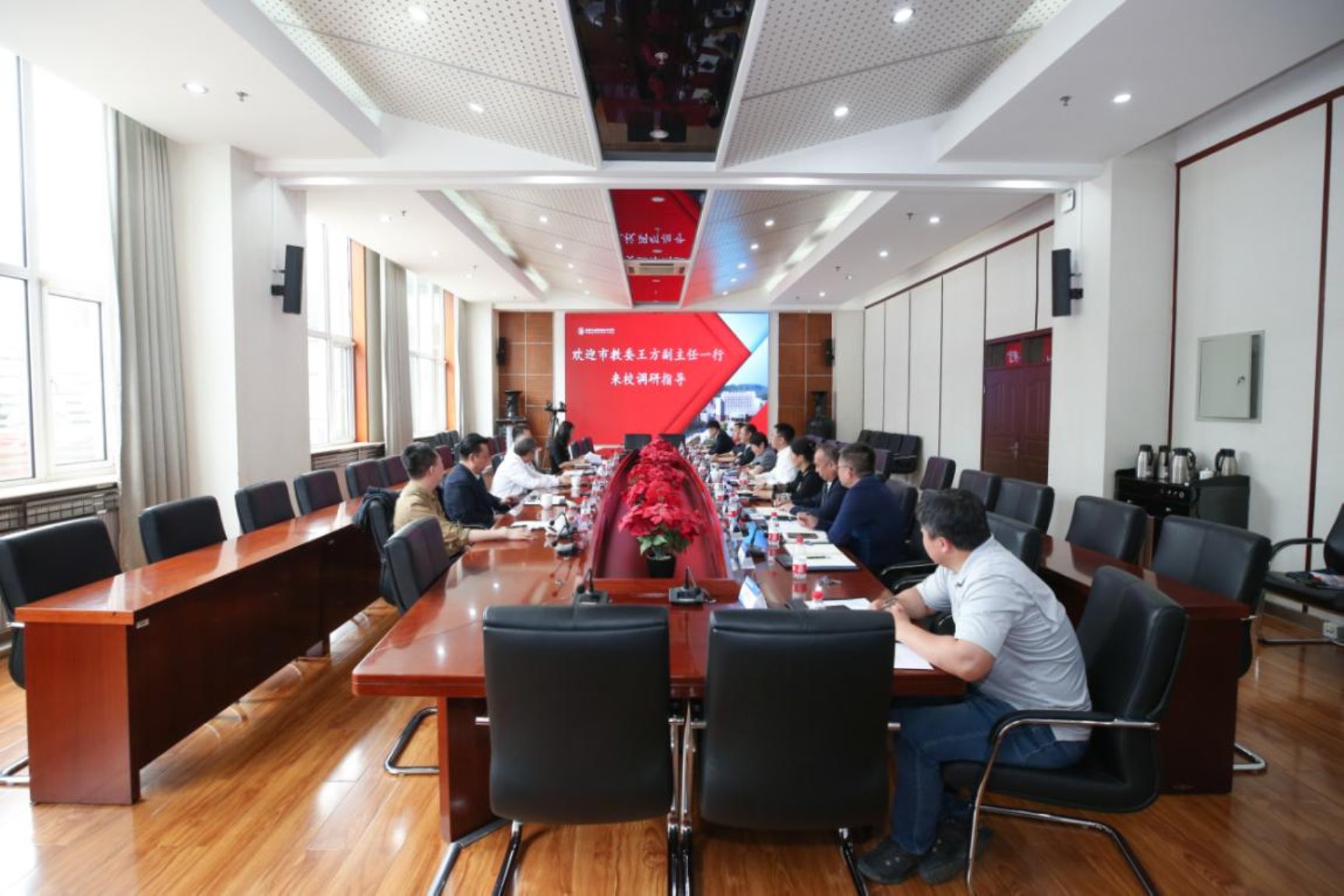 5月16日,市教委副主任王方带领财务处处长张宪国、华体会网页版后勤处处长王力志、基建处副处长王虹、华体会网页版后勤处四级调研员常勇一行五人莅临我校调研。党委副书记、院长柳长安主持了座谈会。党委书记高喜军,党委常委、副院长周燕,党委常委、副院长沈莹,校长助理谢光辉,校党政办、计划财务处、学生工作处、资产管理处、后勤基建处等部门负责人参加调研座谈。