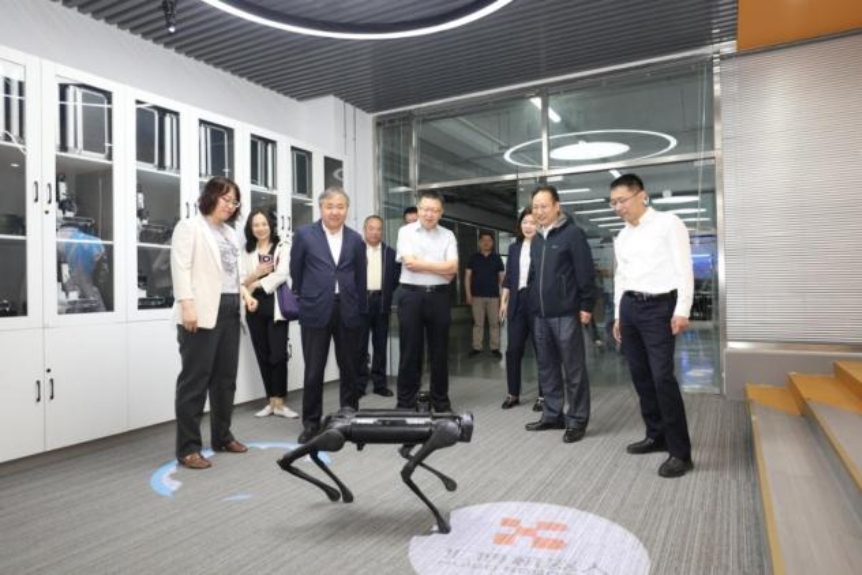 座谈会前,王方一行先后调研了五号学生公寓建设场地和刘先林大师工作室、大疆无人机测绘工程师学院、施耐德中法能效管理应用人才培养和研究中心、智能机器人实训基地、BIM工程中心智慧工地等实训基地。
