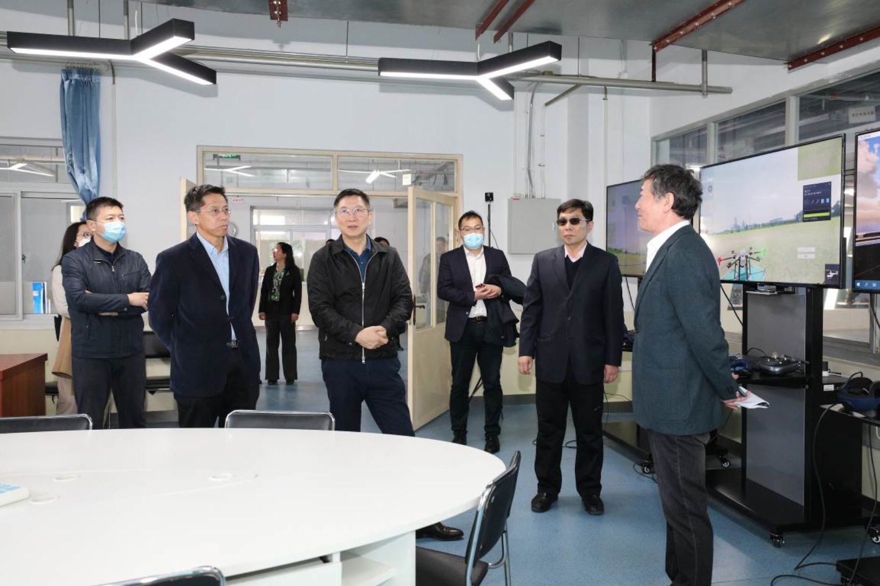 随后,孙其军副主任一行到建筑与测绘工程学院实训基地BIM工程中心考察,了解建筑类专业数字化教学开展情况。了解裸眼3D沉浸式体验区、BIM虚拟技术实训区、VR实景教学区最新数字应用技术以及BIM技术在建筑行业的发展趋势。
