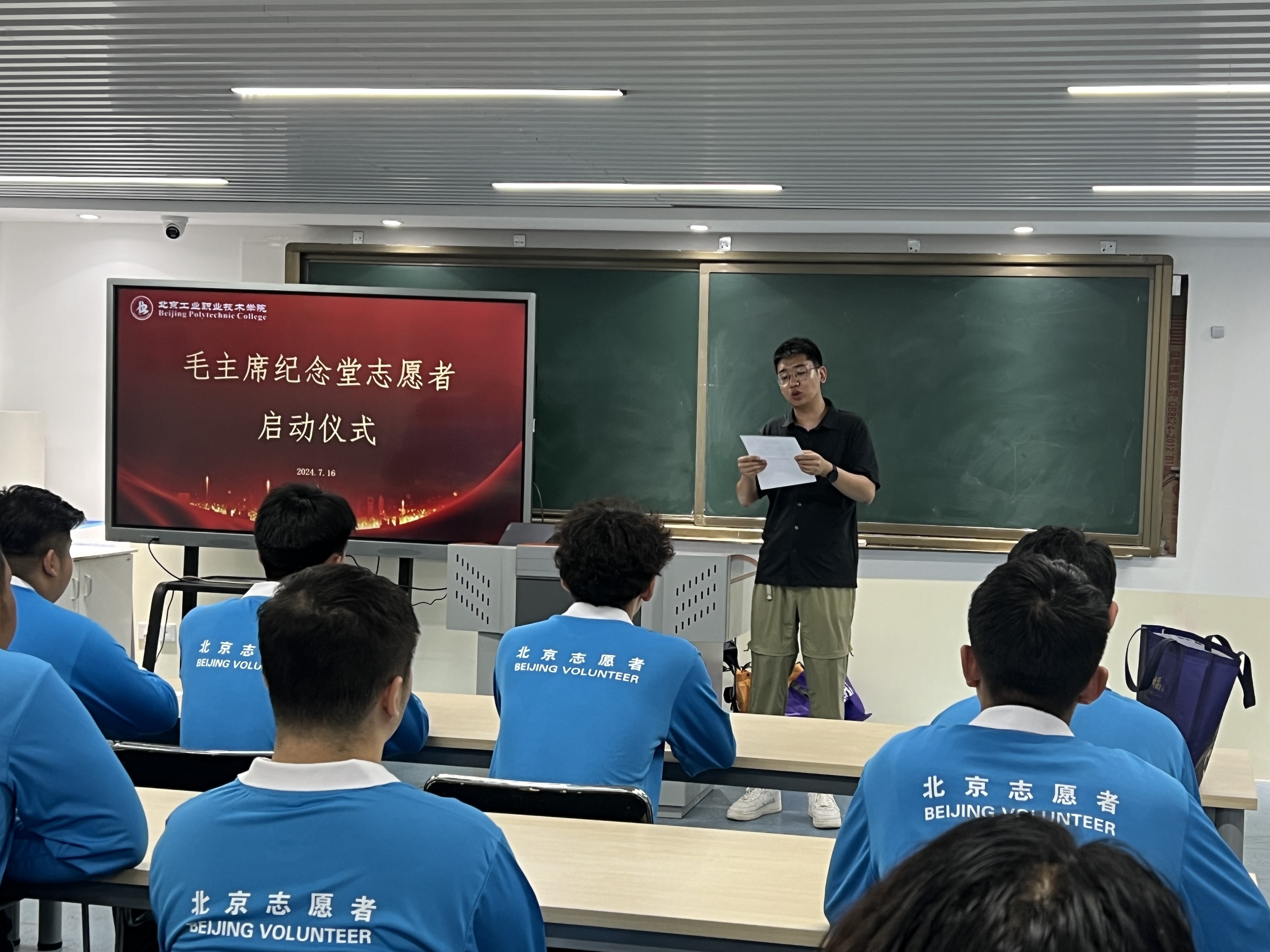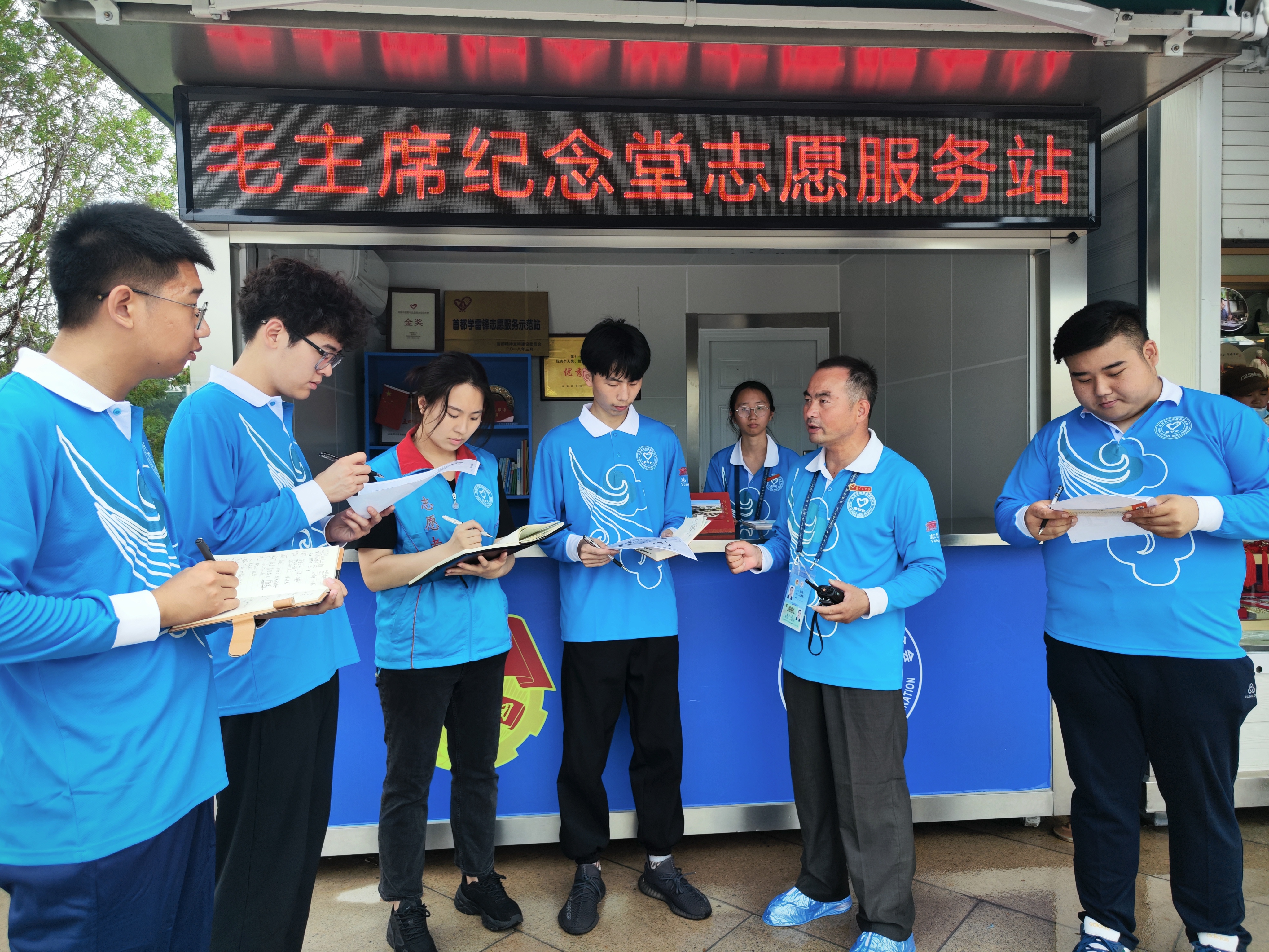 此次毛主席纪念堂志愿服务项目中,我校共承担外围引导岗、蓝立方岗、扶老助残岗、献花岗、团队预约岗五个岗位的服务任务。为以更加昂扬的姿态为主席站岗,以更加暖心的举措为游客服务,志愿服务队指导老师梁国君、马成朋认真给队员们开展上岗培训,在建筑与测绘工程学院团总支书记张宇老师带领下,学院青年志愿者积极学习服务内容并认真参加训练,力争展现北工院青年积极向上的精神风貌。