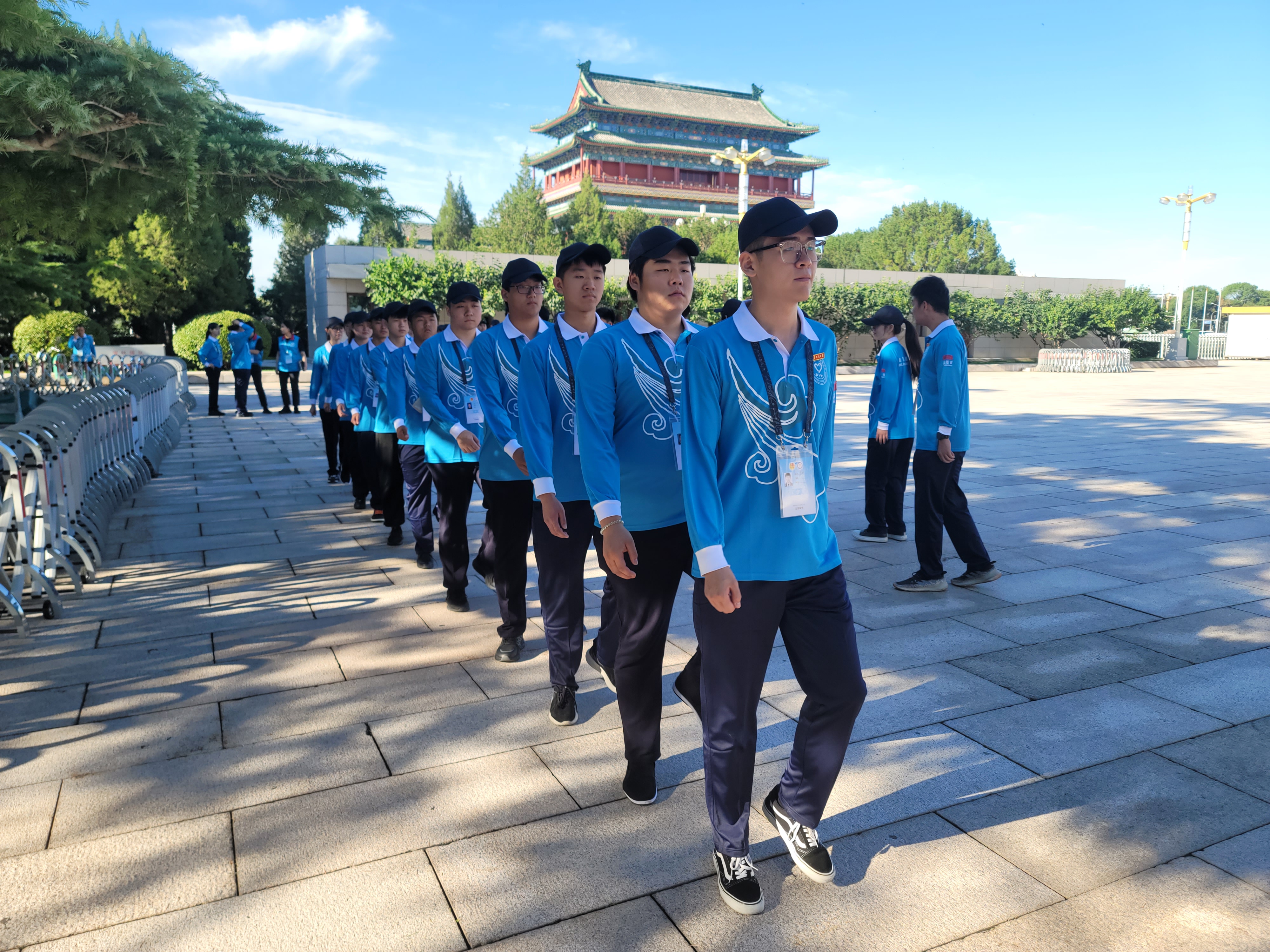 他们怀揣着青春的激情与梦想,以无畏的勇气和坚定的信念,为主席站岗,守护着这份神圣与庄严。他们用汗水浇灌希望,用行动诠释责任,用实际行动践行了“请党放心,强国有我”的青春誓言,展现了新时代青年的风采与力量。天安门广场上熙熙攘攘的人群中,北工院青年们的“志愿蓝”正在闪耀着光芒。