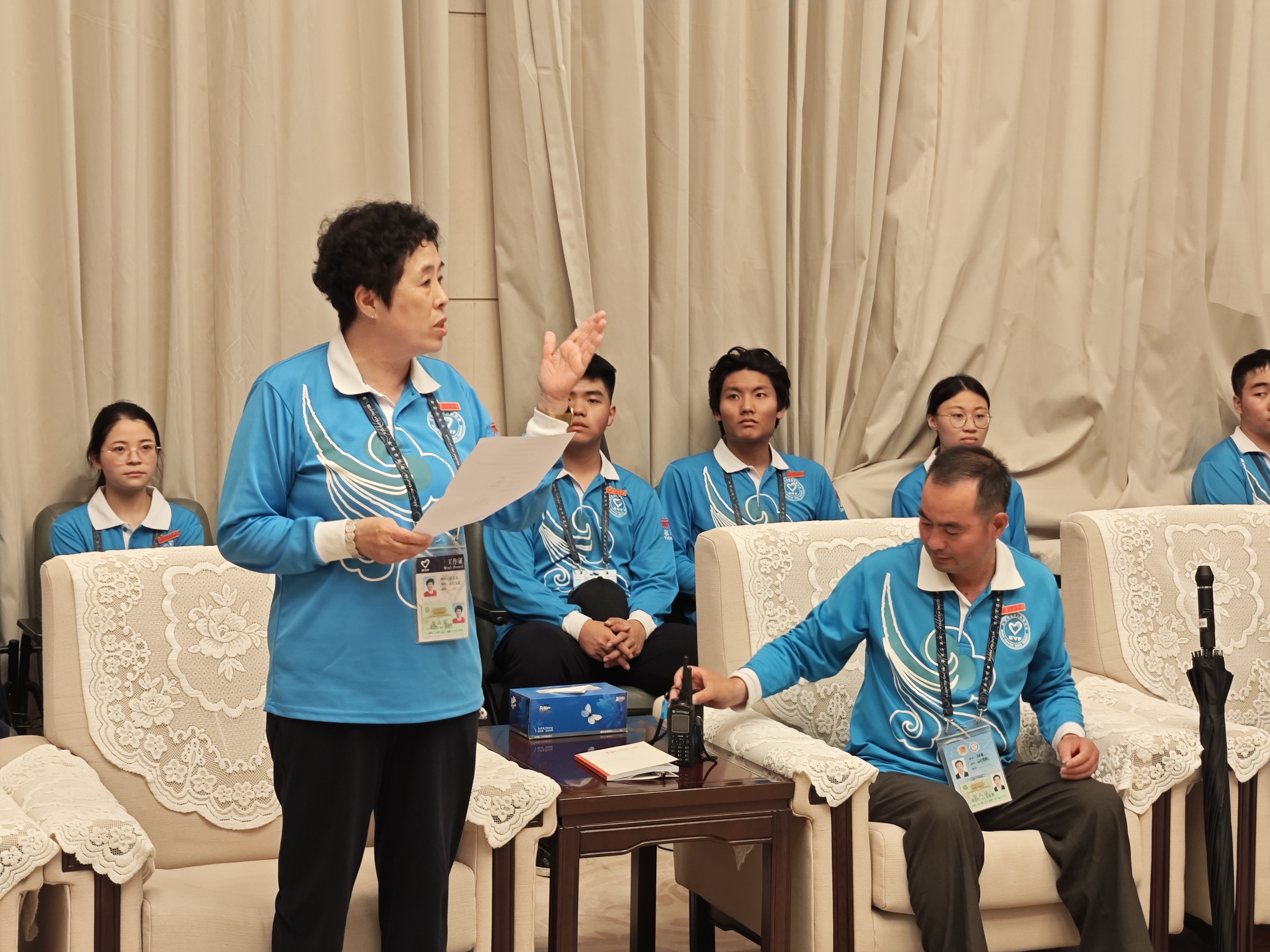 全体领导为志愿者代表佩戴工作证