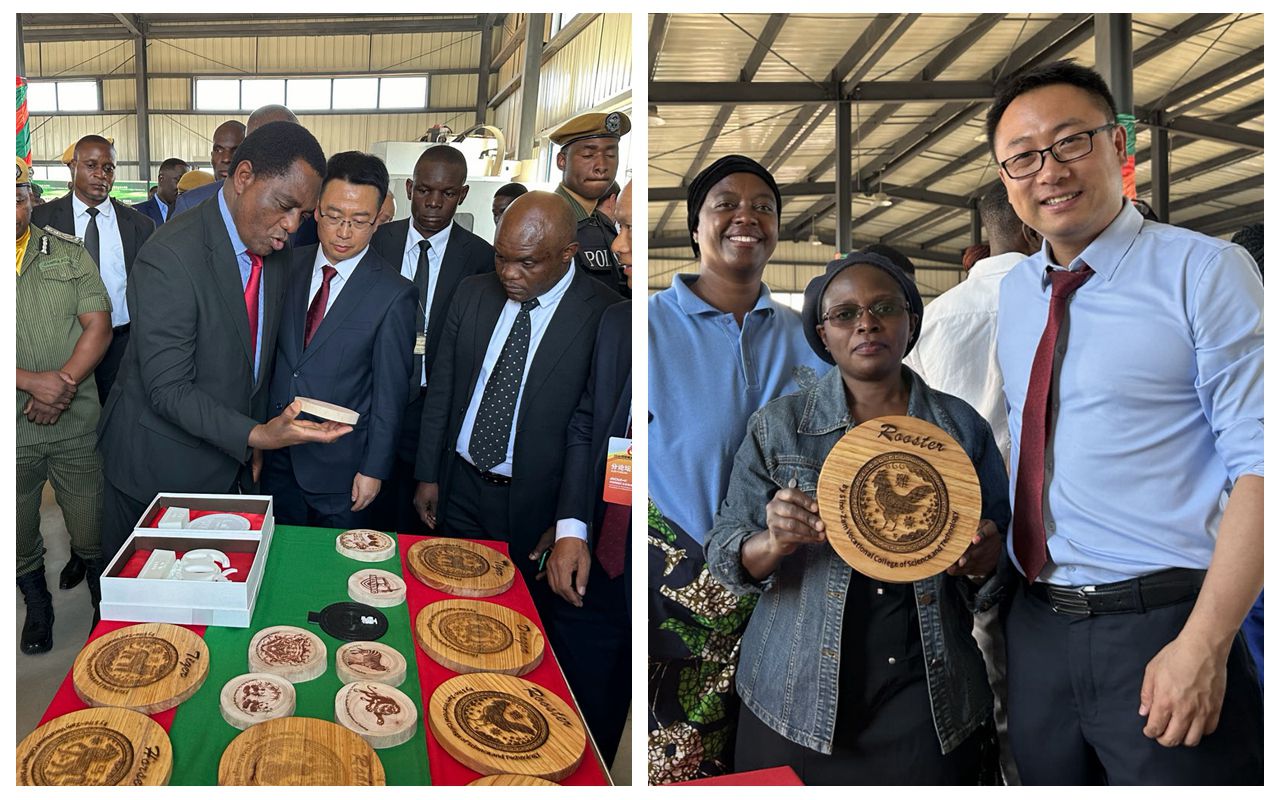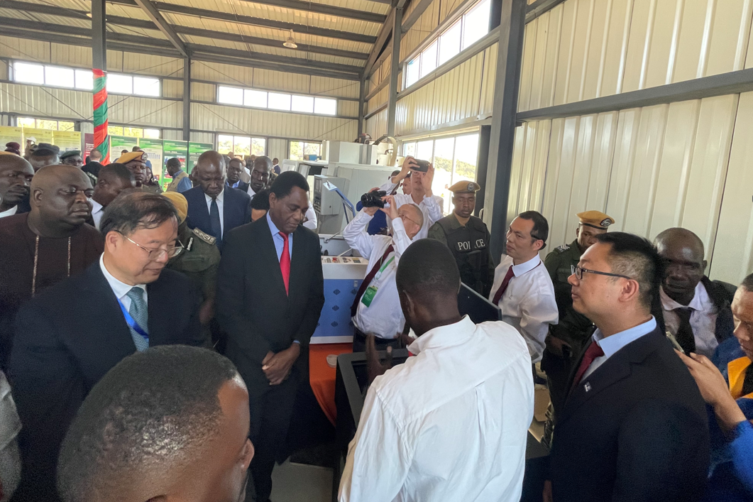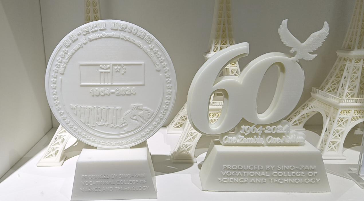 当地时间28日下午,中色卢安夏铜业有限公司举办的中赞建交60周年科技赋能发展论坛展在赞比亚卢安夏市如期举行,赞比亚总统希奇莱马在中国驻赞比亚使馆代办王晟陪同下参观了展厅,中国-赞比亚职业技术学院展示了办学成果和新设备,我校3D打印技术亮相中赞建交60周年科技赋能发展论坛,由我校制作的“中赞建交60周年”主题3D打印会标作为外事礼品赠与了赞比亚总统希奇莱马。